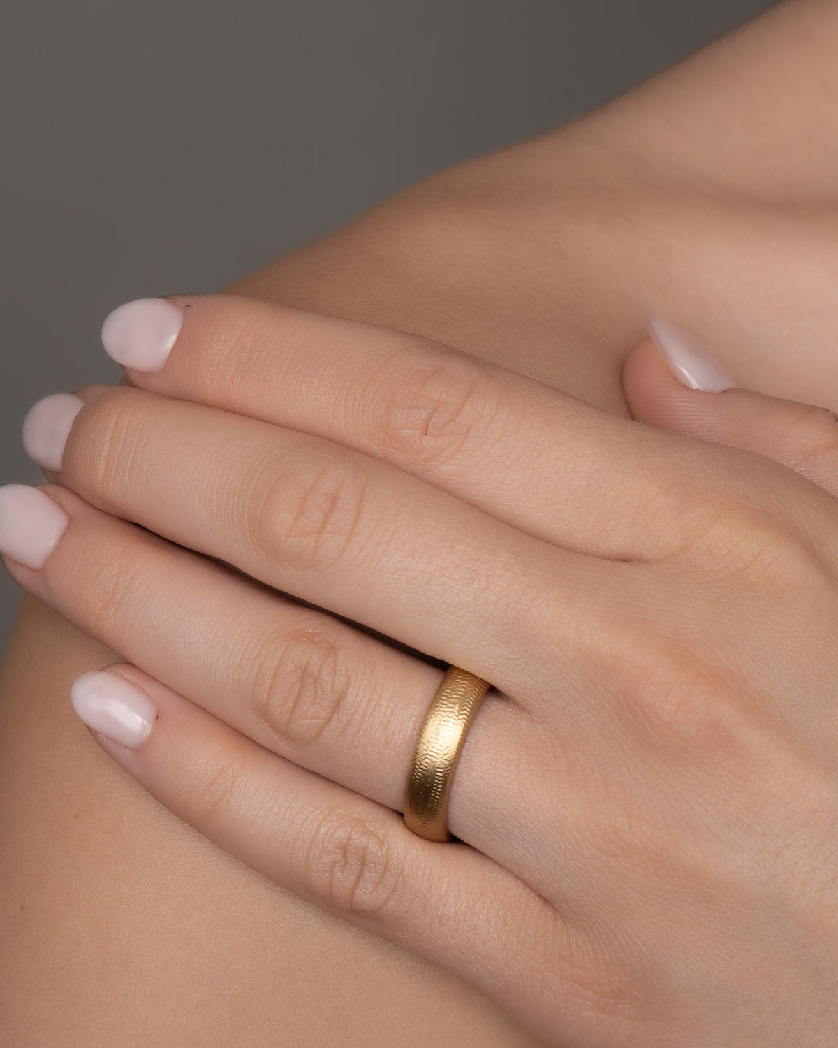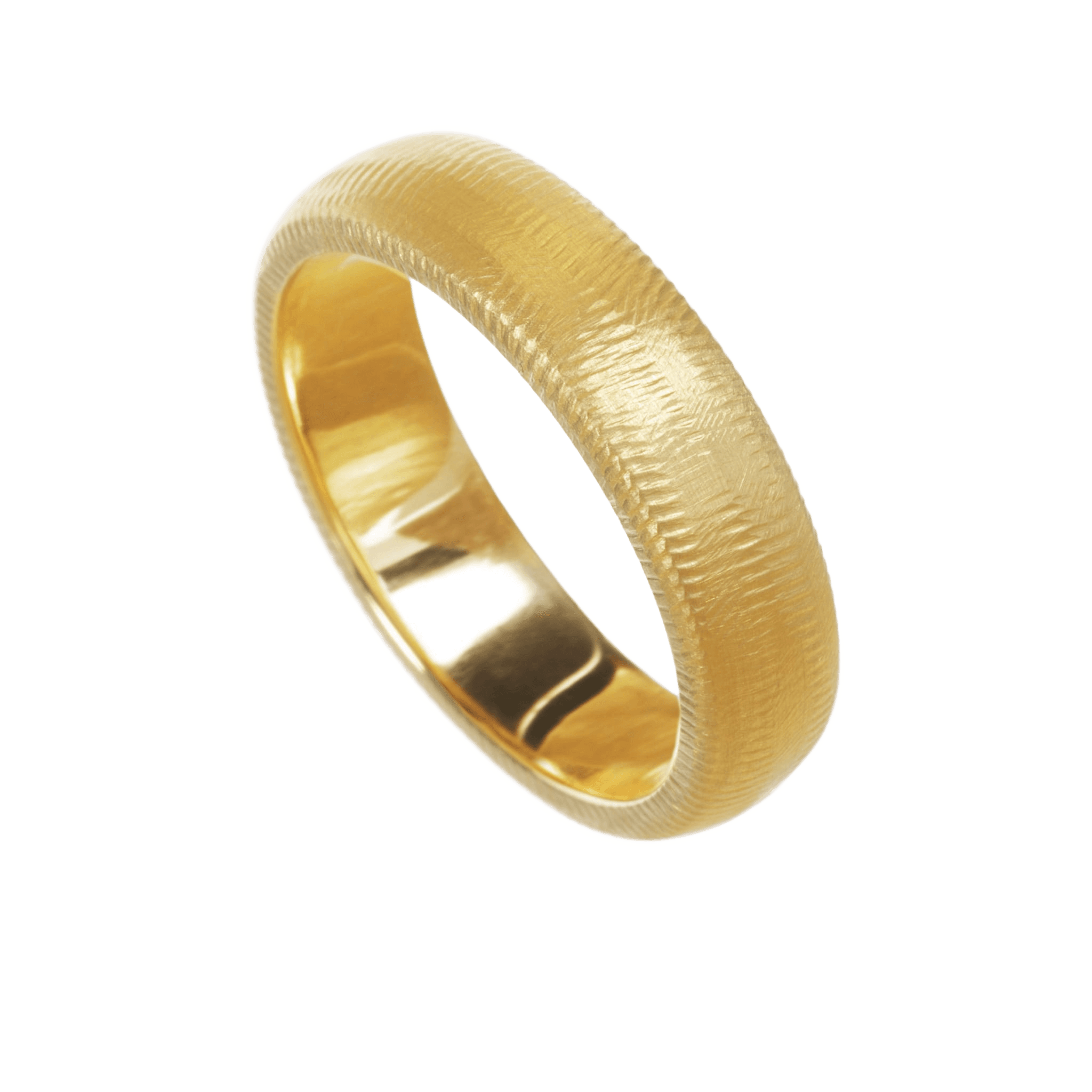 Den brede Curve ring findes i størrelse 50-65, så den kan passe som vielsesring til både mænd og kvinder. Ringen er skabt i hånden med vores håndfilede, riflede signaturoverflade på ydersiden. Indersiden er blankpoleret, så ringen er behagelig og let at tage af og på.