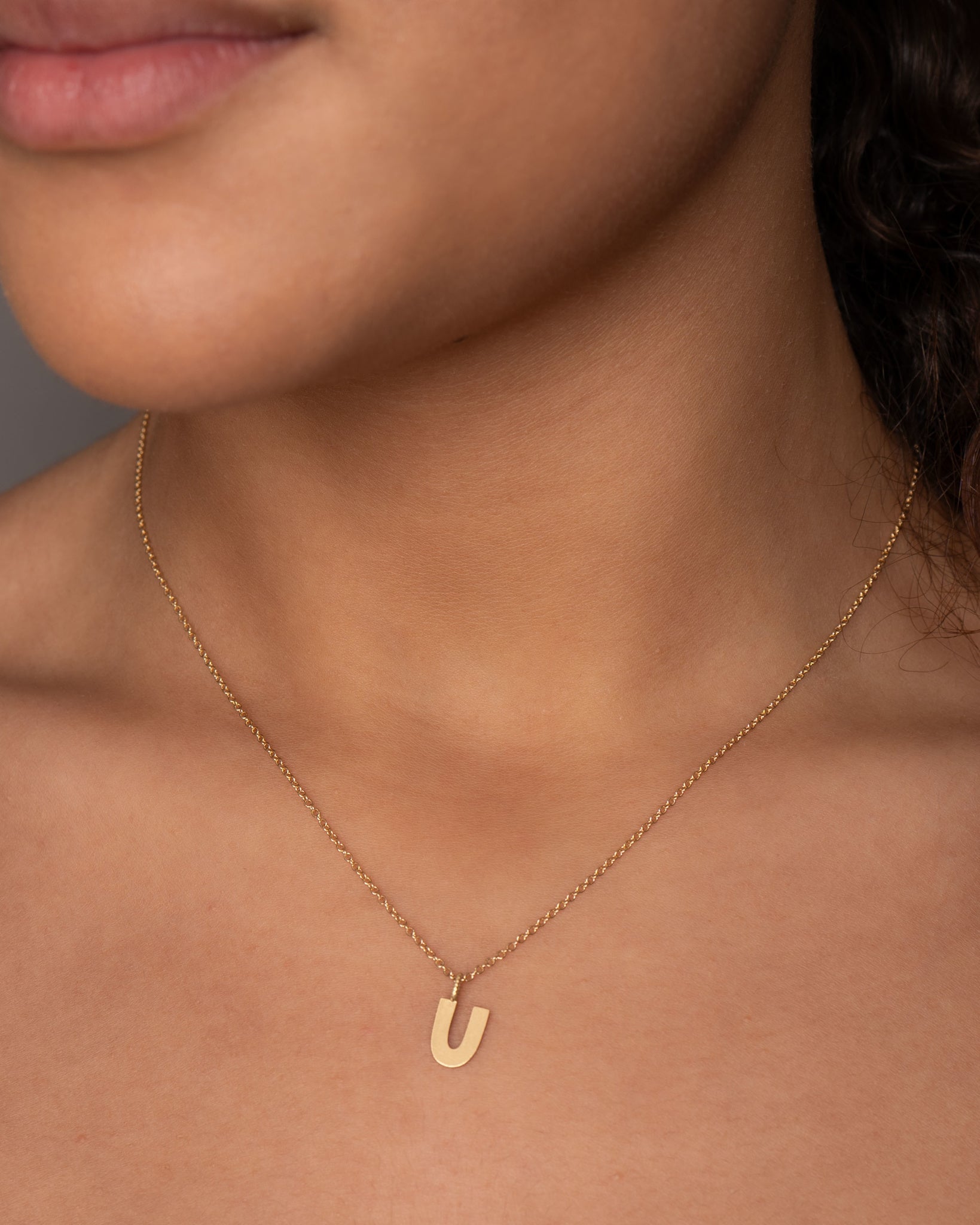 På trods af det skarpe udtryk, falder Letter U vedhænget smukt ind mod huden og gør det behageligt at have på.