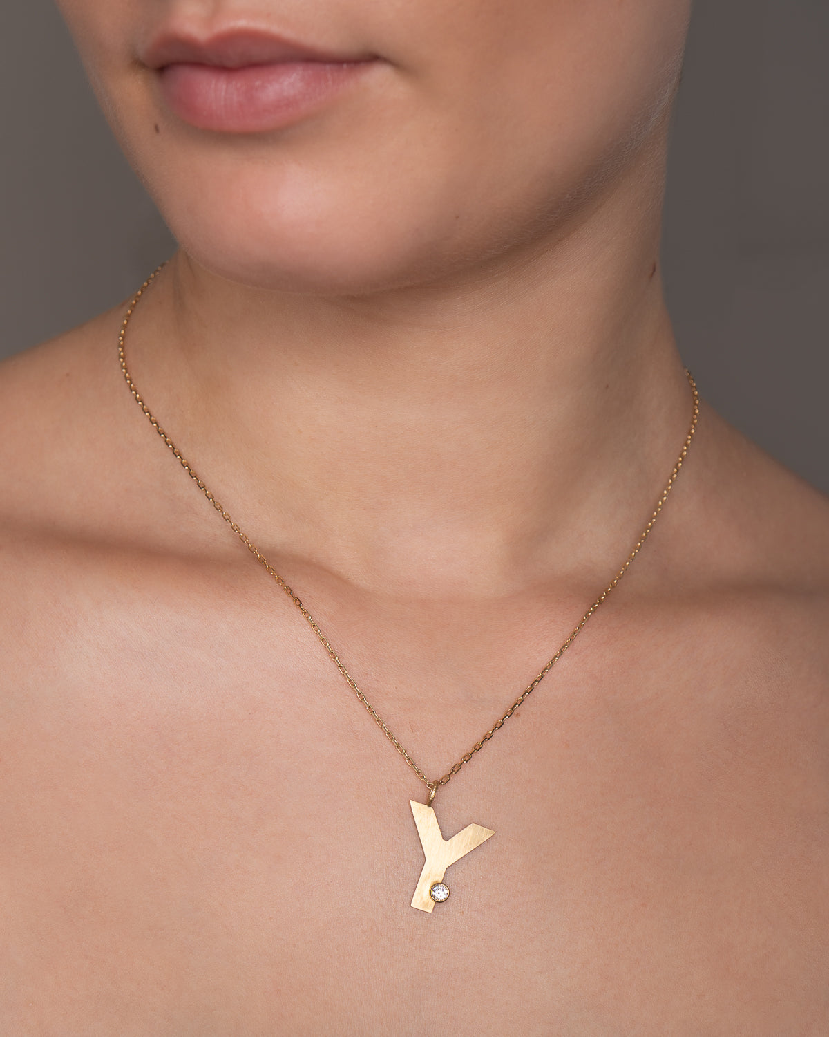 Dulong vedhænget Y har en smuk varm, dyb og glansfuld farve, som fremhæver din huds naturlige glød. Brillanten funkler smukt i lyset og komplimenterer bogstavets silkematte overflade.