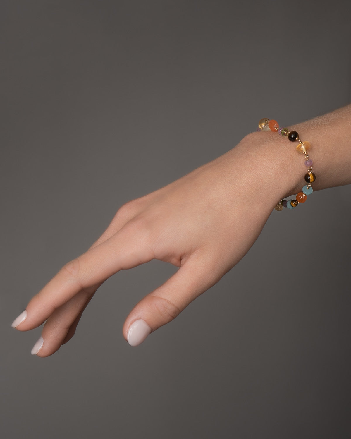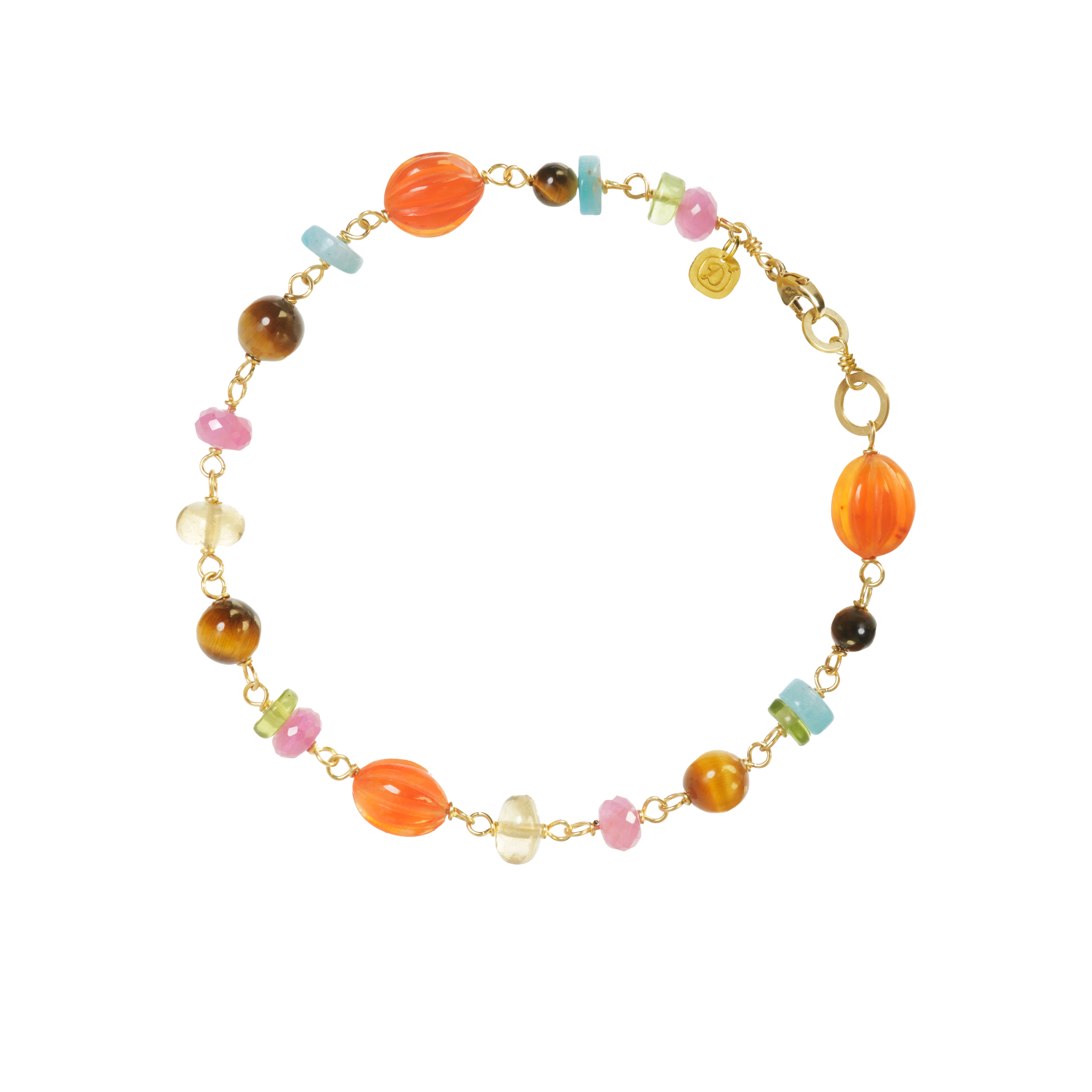 18K guld med Mogok-rubin, vesuvian, amazonit, tigerøje, karneol og citrin