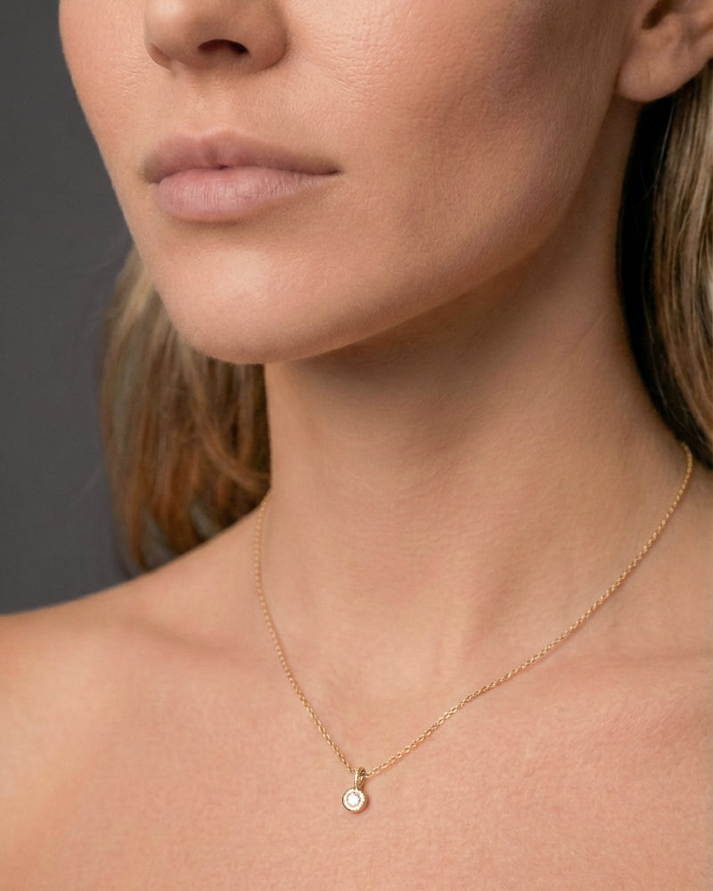 Glory Vedhæng i 18K guld er sat med en brillantsleben diamant på 0,11 ct, der tilfører designet et lille, men markant lys.