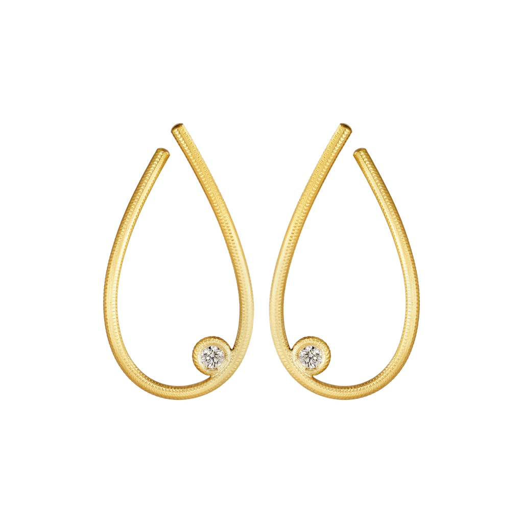 Dulongs ikoniske Kharisma-kollektion har fået navn efter det græske ord for en stærk, personlig udstråling og begavelse. Smykkernes enkle design hviler på en dynamisk kurve og Dulongs riflede signaturoverflade. Øreringene i Kharisma-kollektionen kan tilføjes et vedhæng.