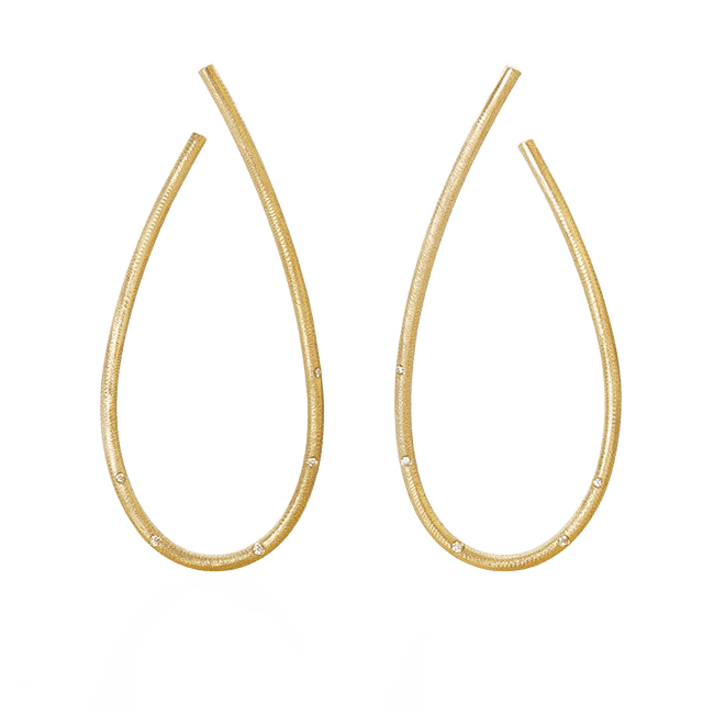 Kharisma kollektionen er kendetegnet ved den håndfilede, riflede overflade og det store udvalg af forskellige størrelser og ædelmetaller, med eller uden brillanter. Bemærk at der er en højre og en venstre ørering og at de skal placeres, så kurven peger væk fra ansigtet.