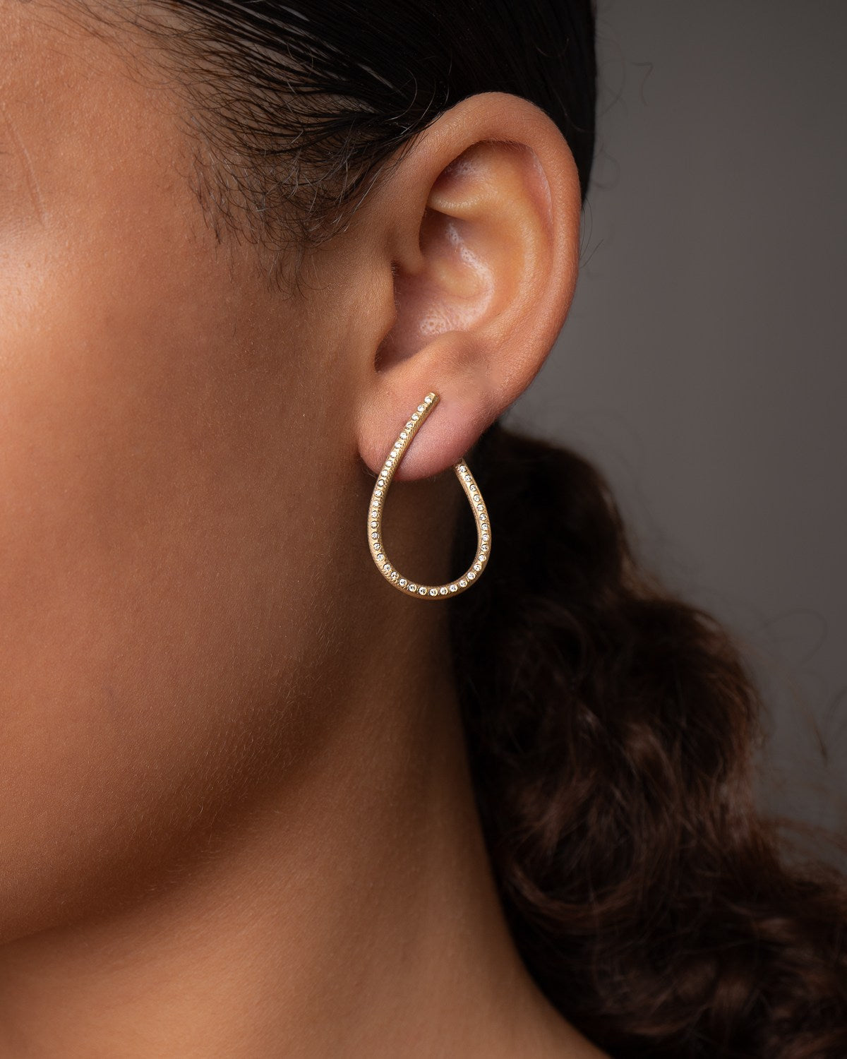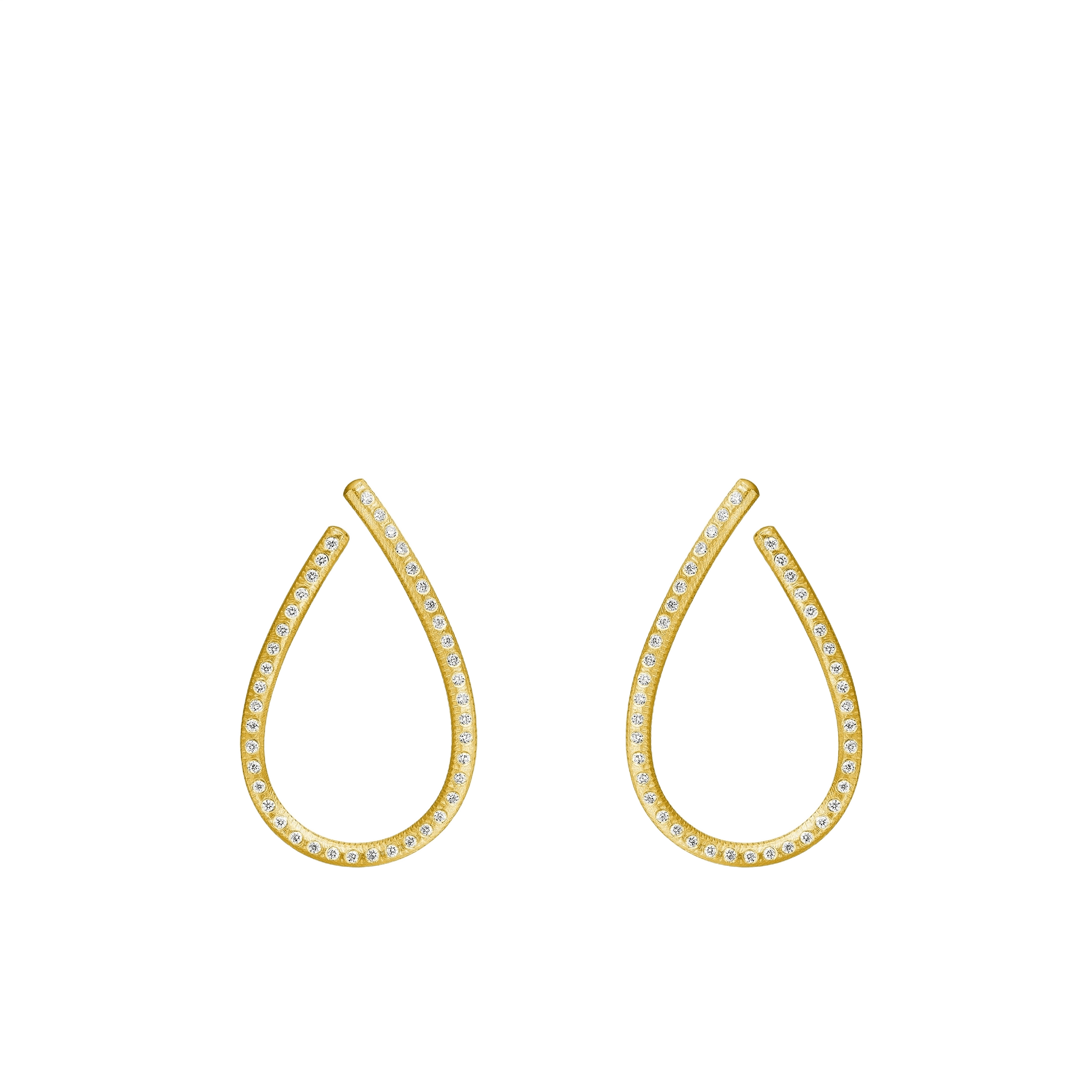 Vores ikoniske Kharisma øreringe er i Galaxy versionen blevet udsmykket med en tæt række af funklende brillanter, som følger og understreger kurvens form. I størrelse mellem sidder der 42 diamanter på hver ørering. Guldsmedene har givet øreringene Dulongs håndfilede, riflede signaturoverflade, som giver en rå kontrast til de eksklusive brillantslebne diamanter.