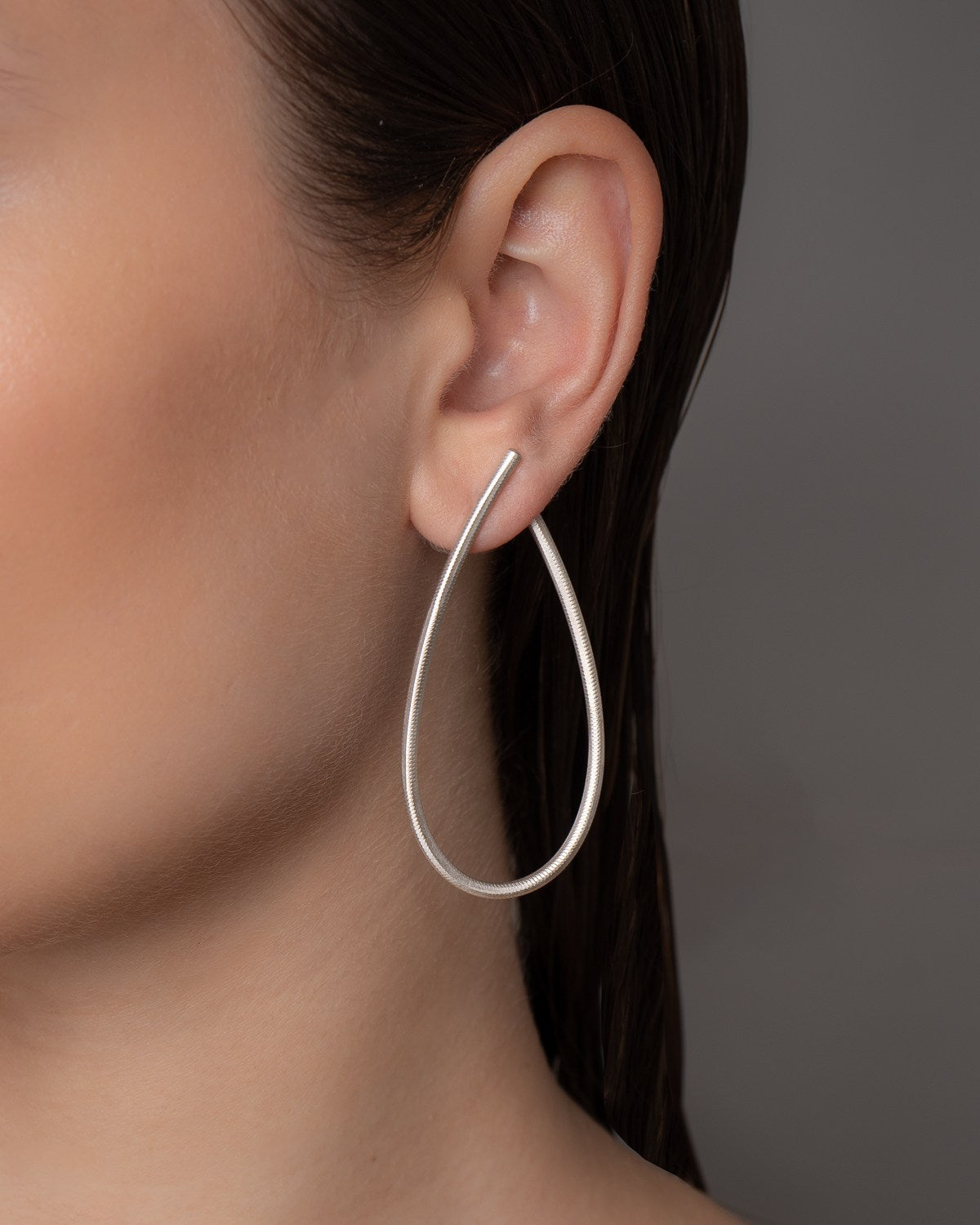 Kharisma øreringe i størrelse mega er til dig, der er vild med det ekstraordinære. Den høje, slanke bue bliver endnu mere dramatisk, når den tilføres vedhæng med perler eller smukke sten.