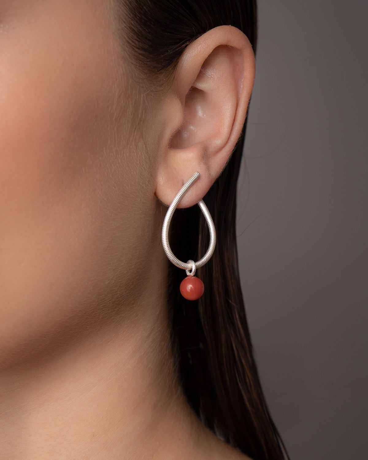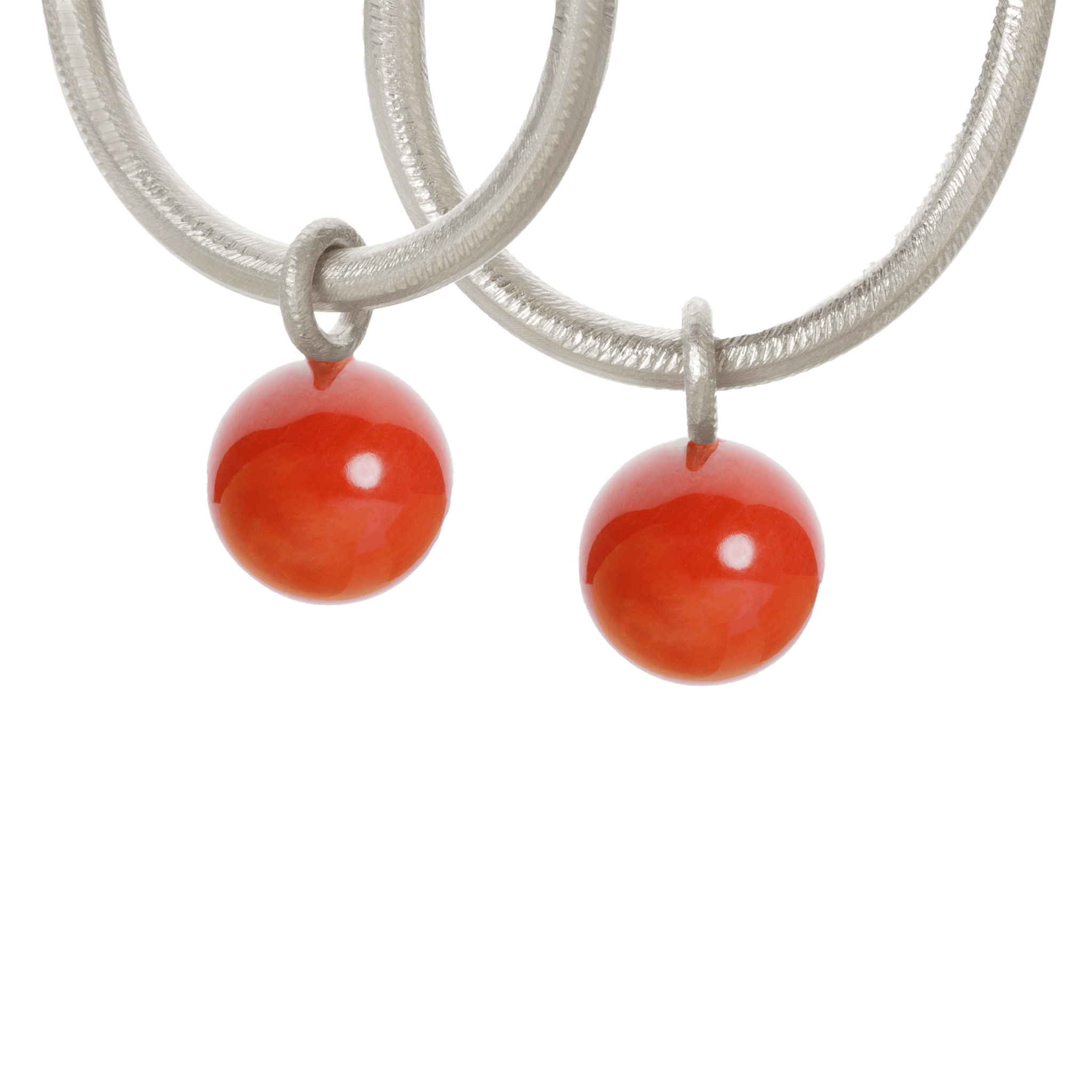 Globe vedhæng med koral passer smukt til de andre smykker fra denne kollektion, men er også skabt til at blive båret med Dulong smykker på tværs af kollektionerne.