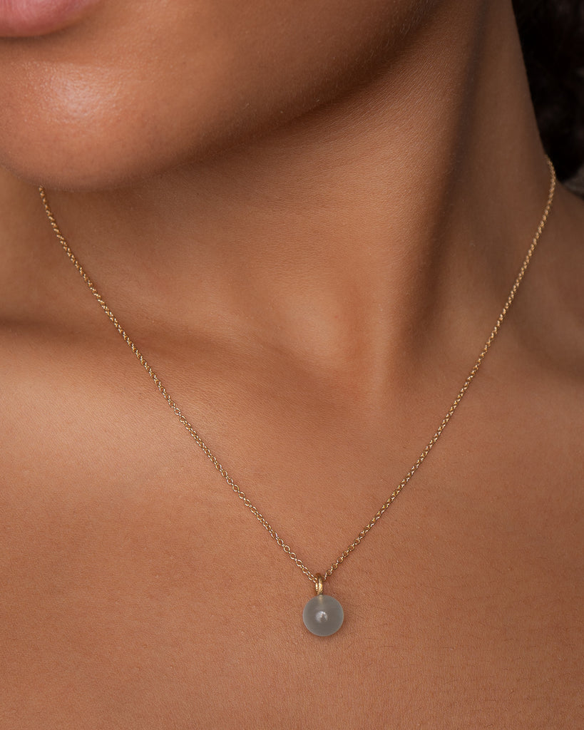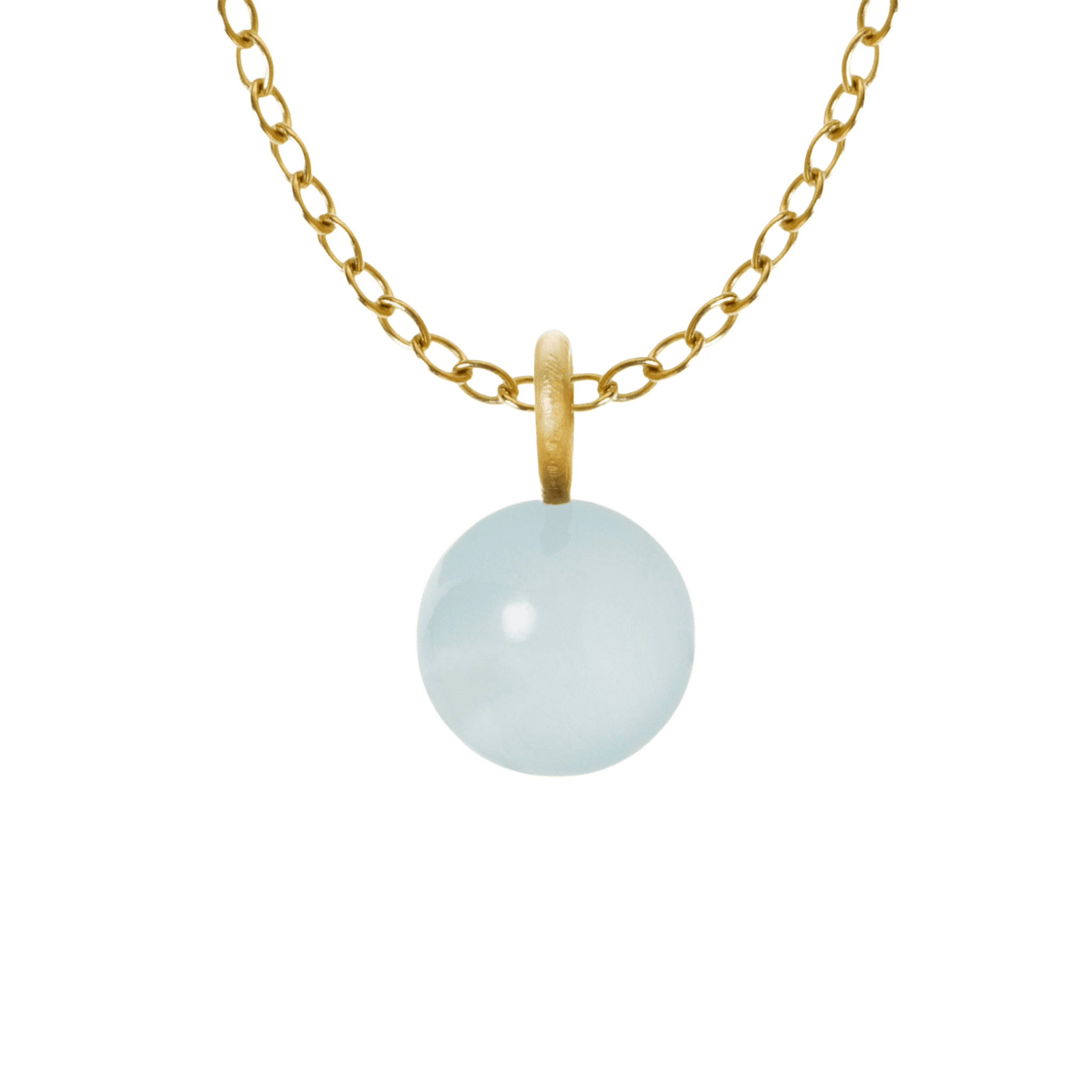 Globe vedhæng med akvamarin passer smukt til de andre smykker fra denne kollektion, men er også skabt til at blive båret med Dulong smykker på tværs af kollektionerne.