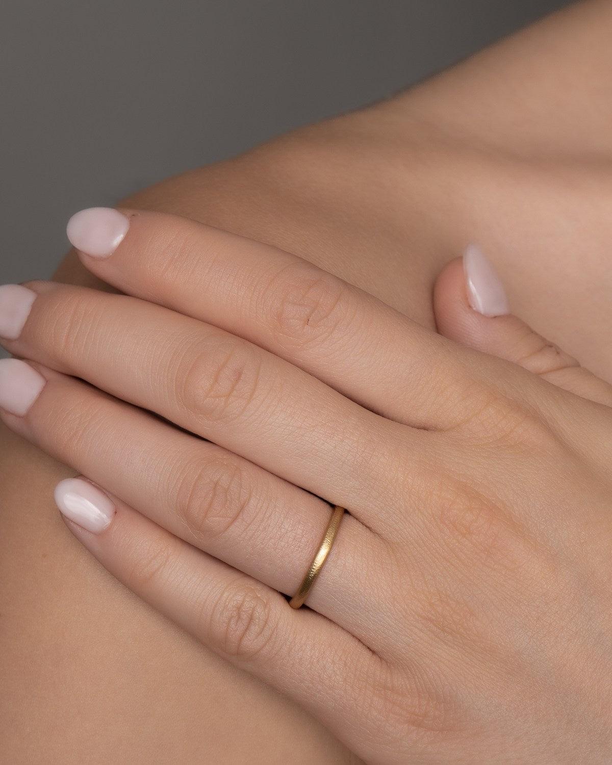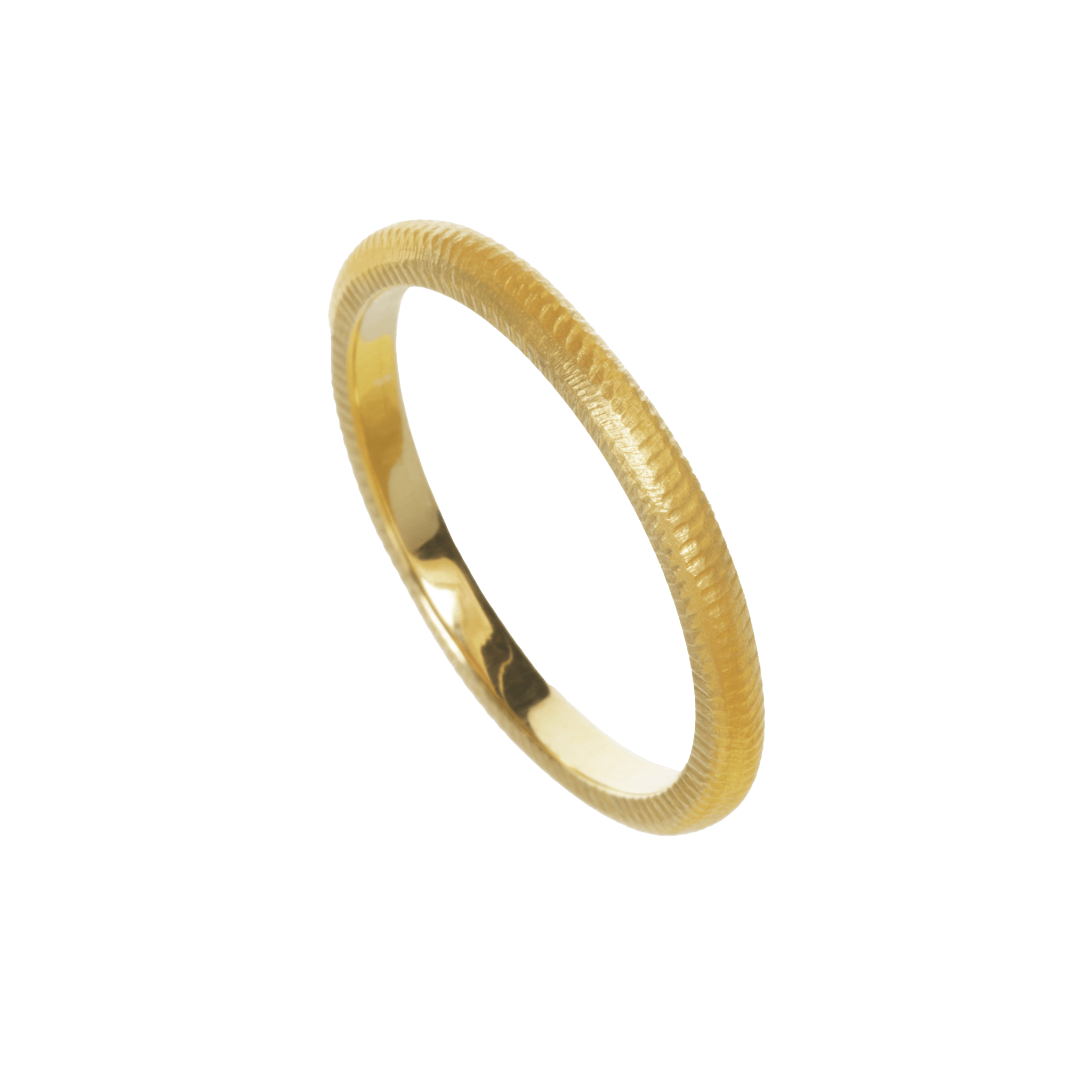 Udtryk din kærlighed og lidenskab med vores elegante Curve ring. En enkel ring, der bærer en stærk og smuk historie, til konstant at minde dig om din bedre halvdel. Hver ring er skabt i hånden og er dermed et unikt smykke med sine egne strukturer og mønstrer. Overfladen som karakteriserer Dulong smykkerne bliver kun smukkere med tiden.
