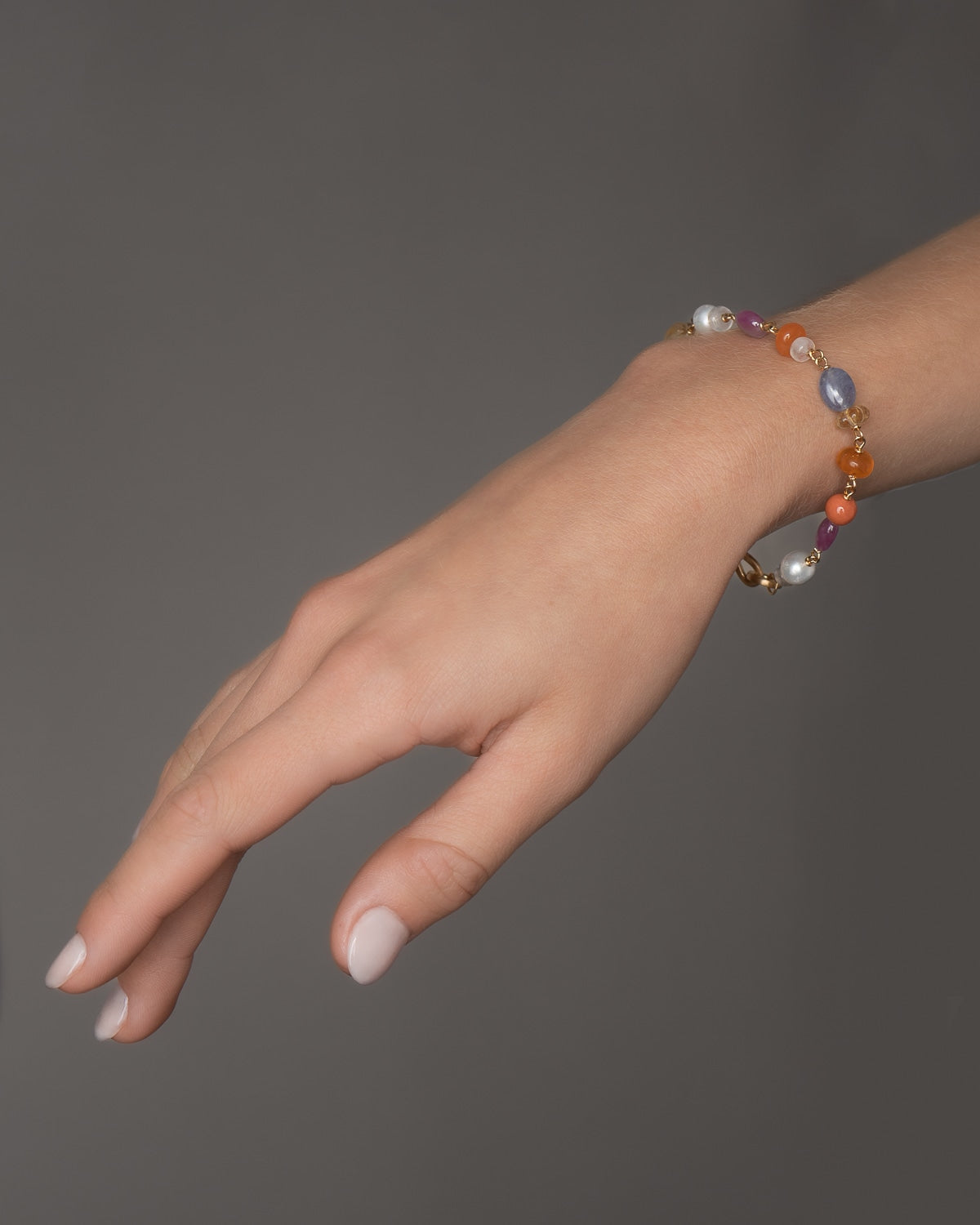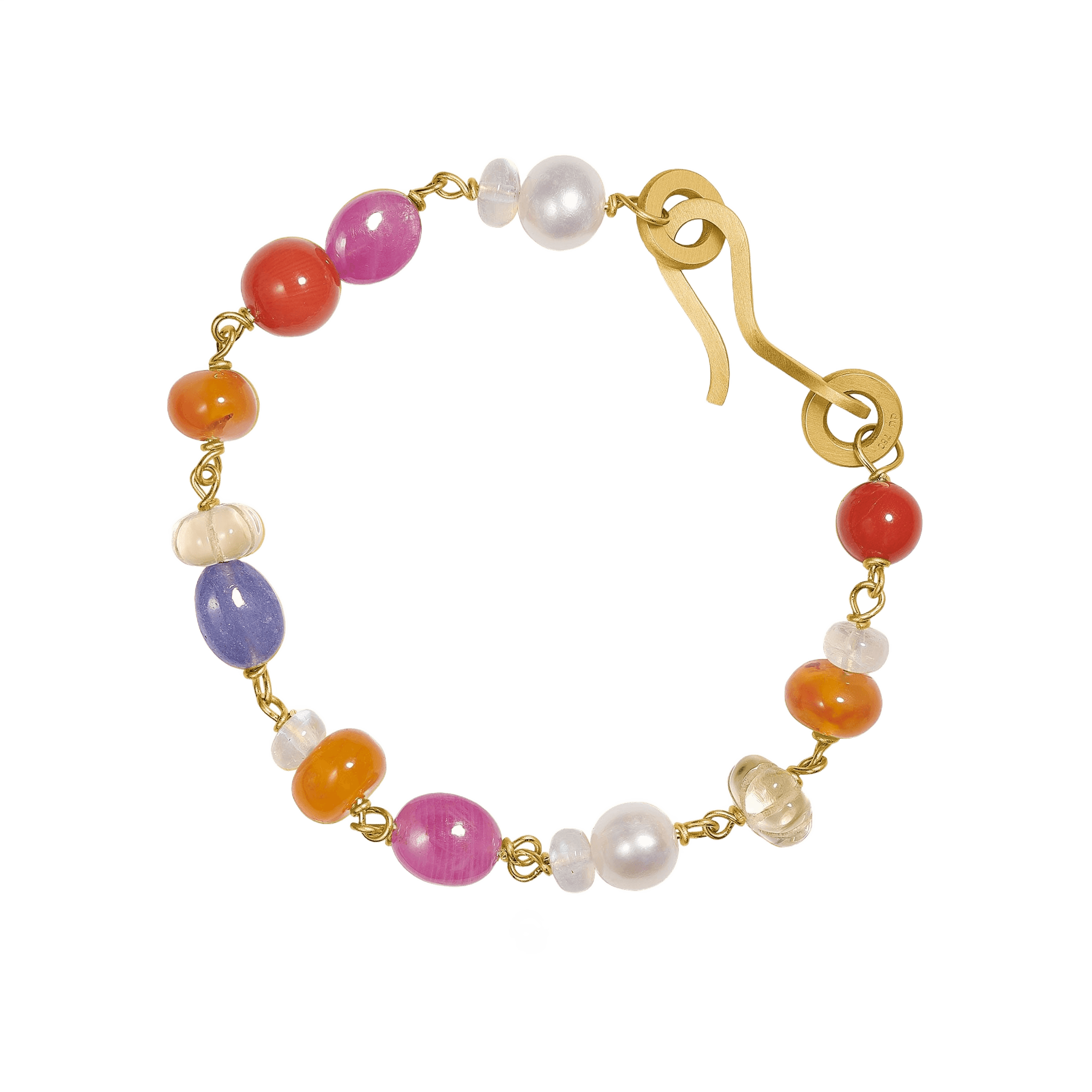18K guld med koral, Mogok-rubin, karneol, citrin, blå månesten, tanzanit og ferskvandsperler