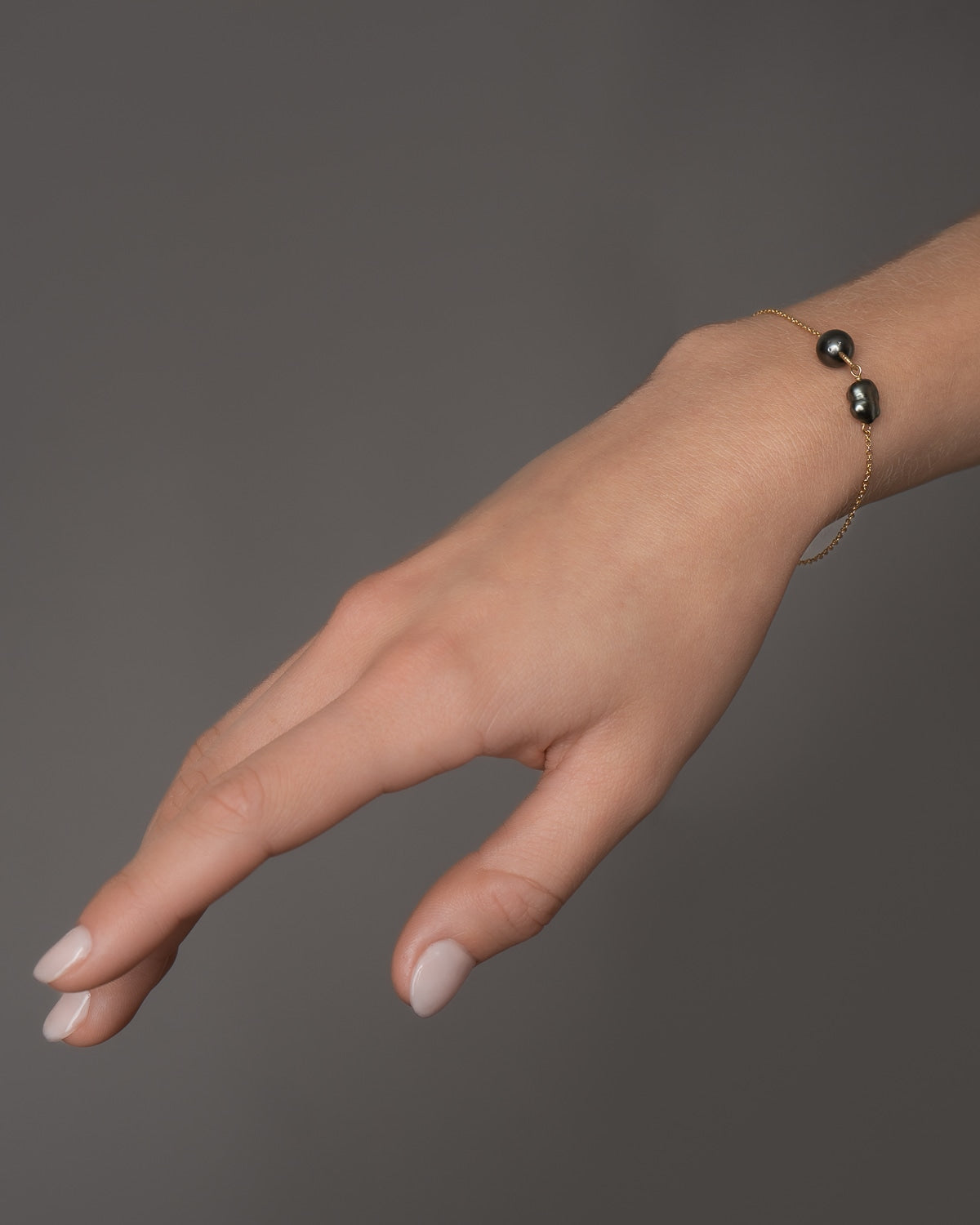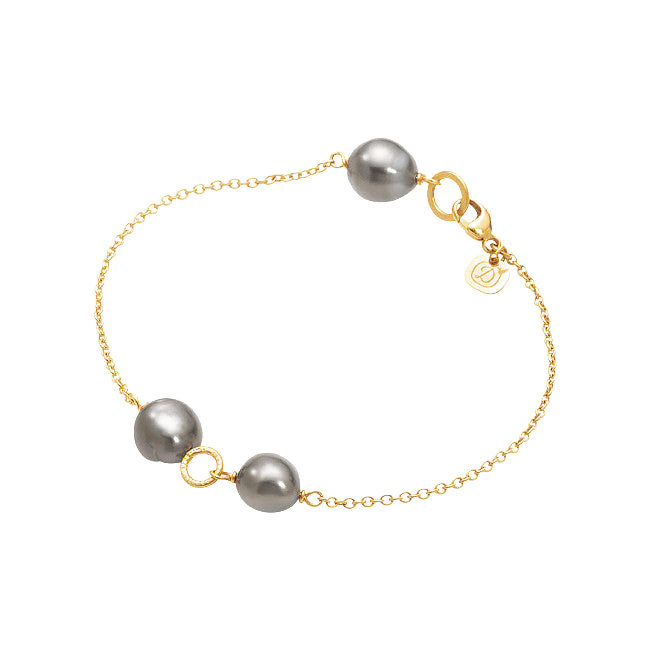 Piccolo Moonlight armbåndet med tre funklende midnatsgrå Tahitiperler falder så let om håndleddet, at man næsten ikke mærker, at man har det på. Det fine armbånd er delikat, og der lægger mange timers håndværk bag.
