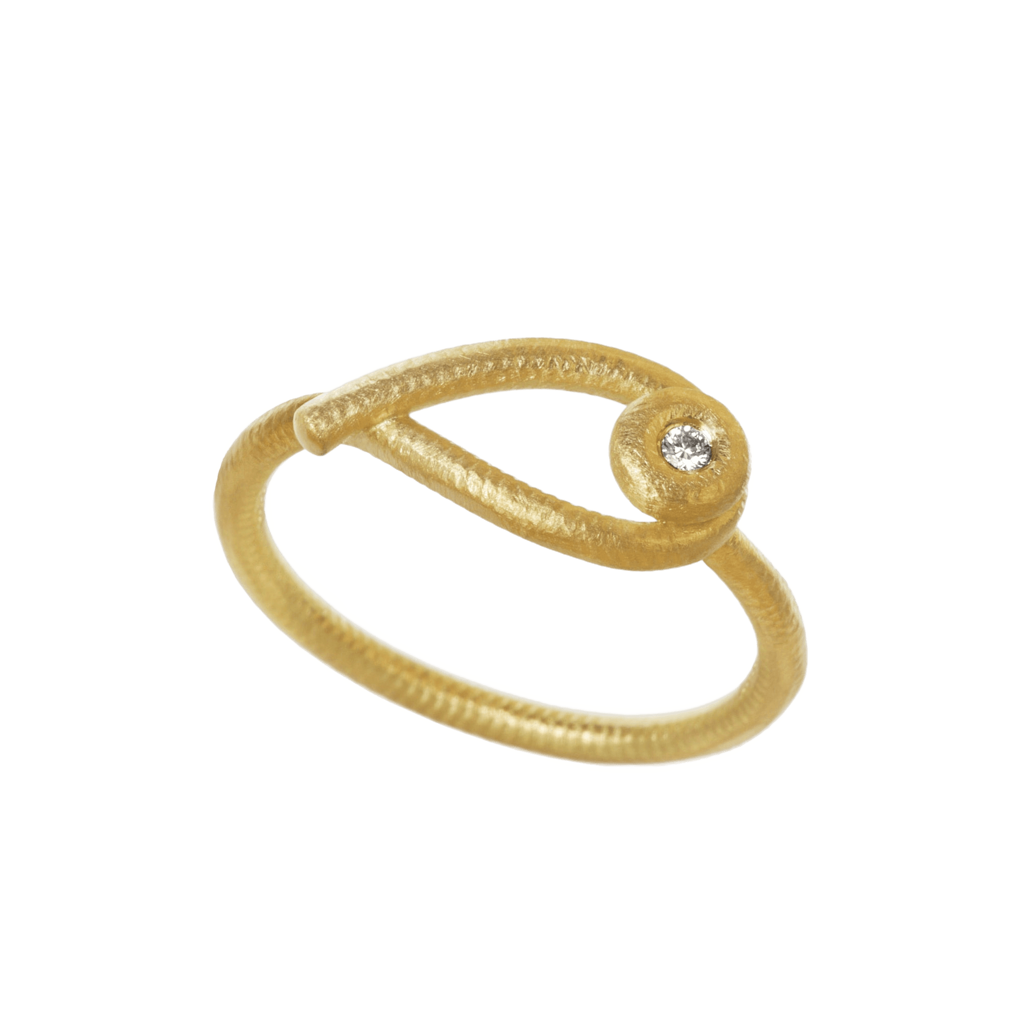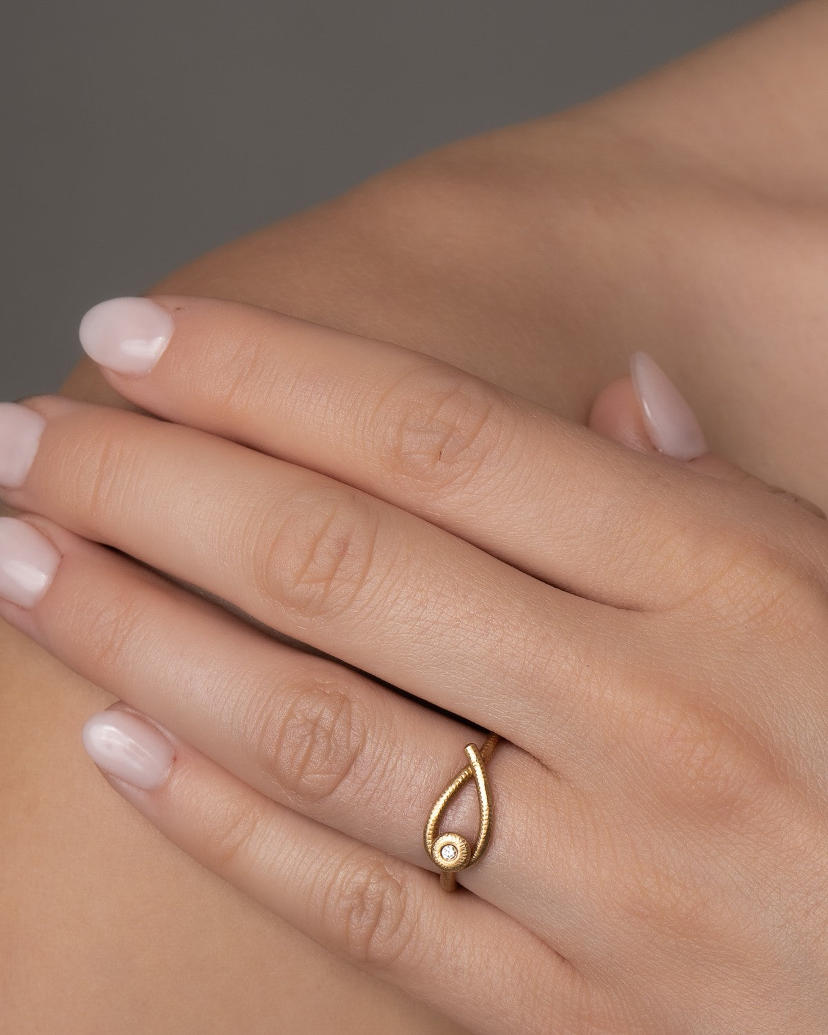 Kharisma ringen er skabt i et tidløst og glamourøst design. Den smukke kurve er ikonisk i sin enkelhed. Den håndfilede, riflede overflade og den smukke diamant leger med lyset, når du bevæger hænderne.