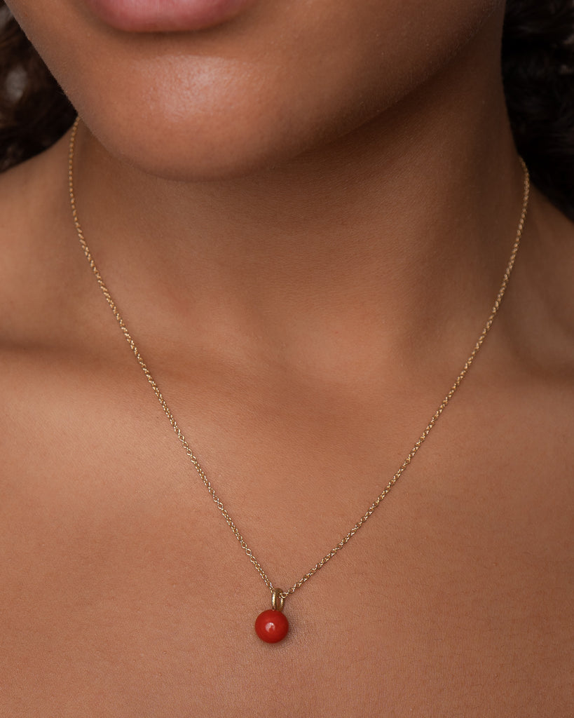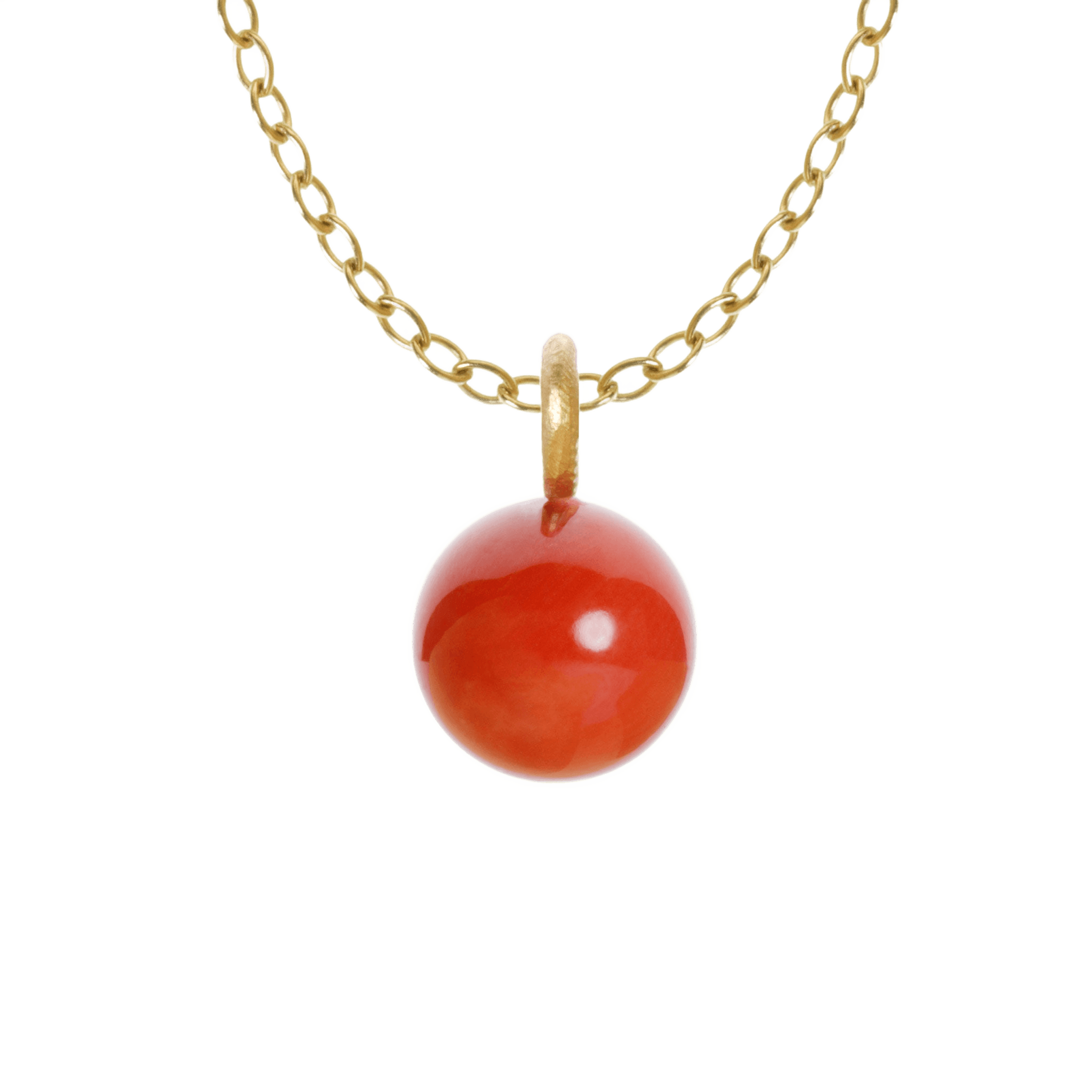 Globe vedhæng med koral passer smukt til de andre smykker fra denne kollektion, men er også skabt til at blive båret med Dulong smykker på tværs af kollektionerne.