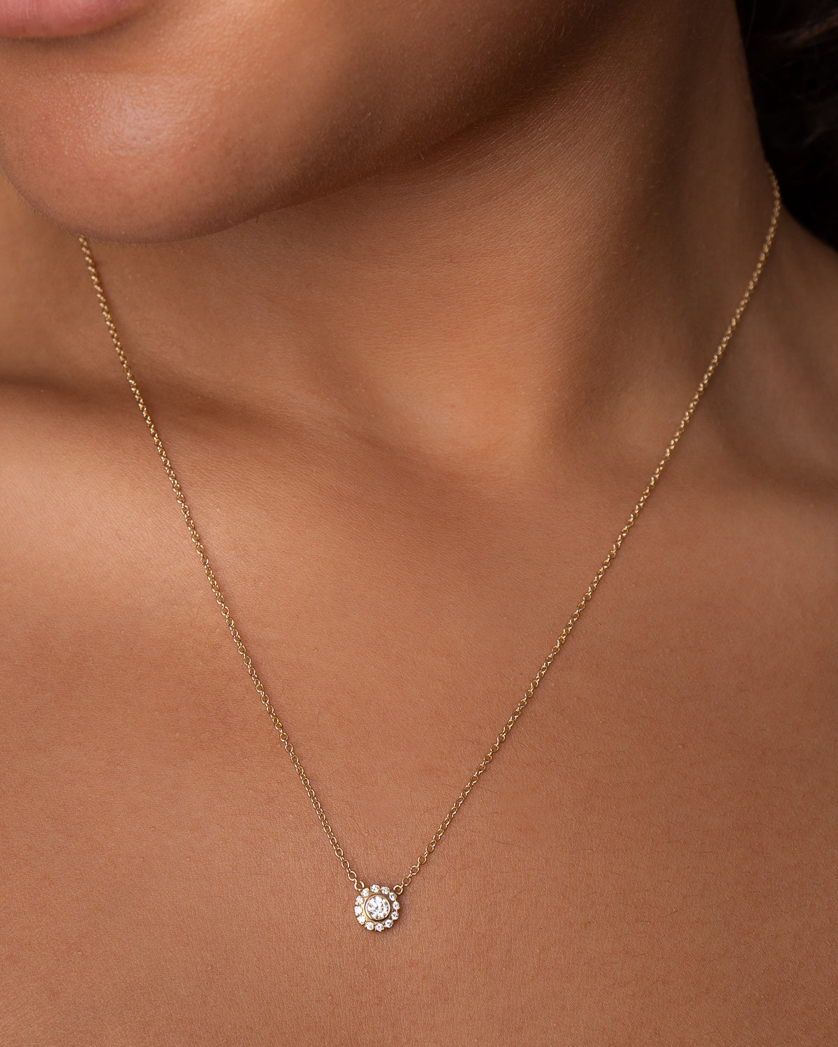 Harmony halskæden er skabt med et smukt diamantvedhæng, der sidder på en klassisk Dulong Stream kæde i guld 18 K på 47 cm. Et fastsiddende vedhæng skaber et eksklusivt udtryk og sikrer, at vedhænget altid sidder smukt på halsen og reflekterer lys over kraveben og halslinjer. Denne halskæde har i alt 0,19 carat diamanter.