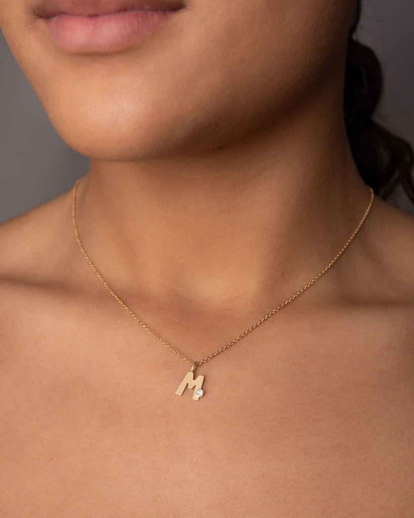 Vedhænget Letter M er et personligt bogstav. En symbolsk og smuk gave til dig selv eller én, du elsker, uanset lejligheden. Vælg en flot kæde til bogstav-vedhænget