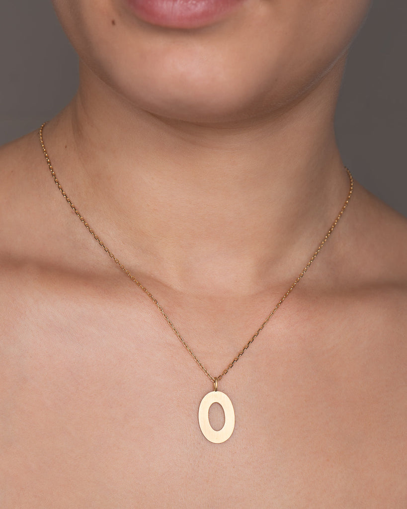 På trods af det skarpe udtryk, falder Letter O vedhænget smukt ind mod huden og gør det behageligt at have på.