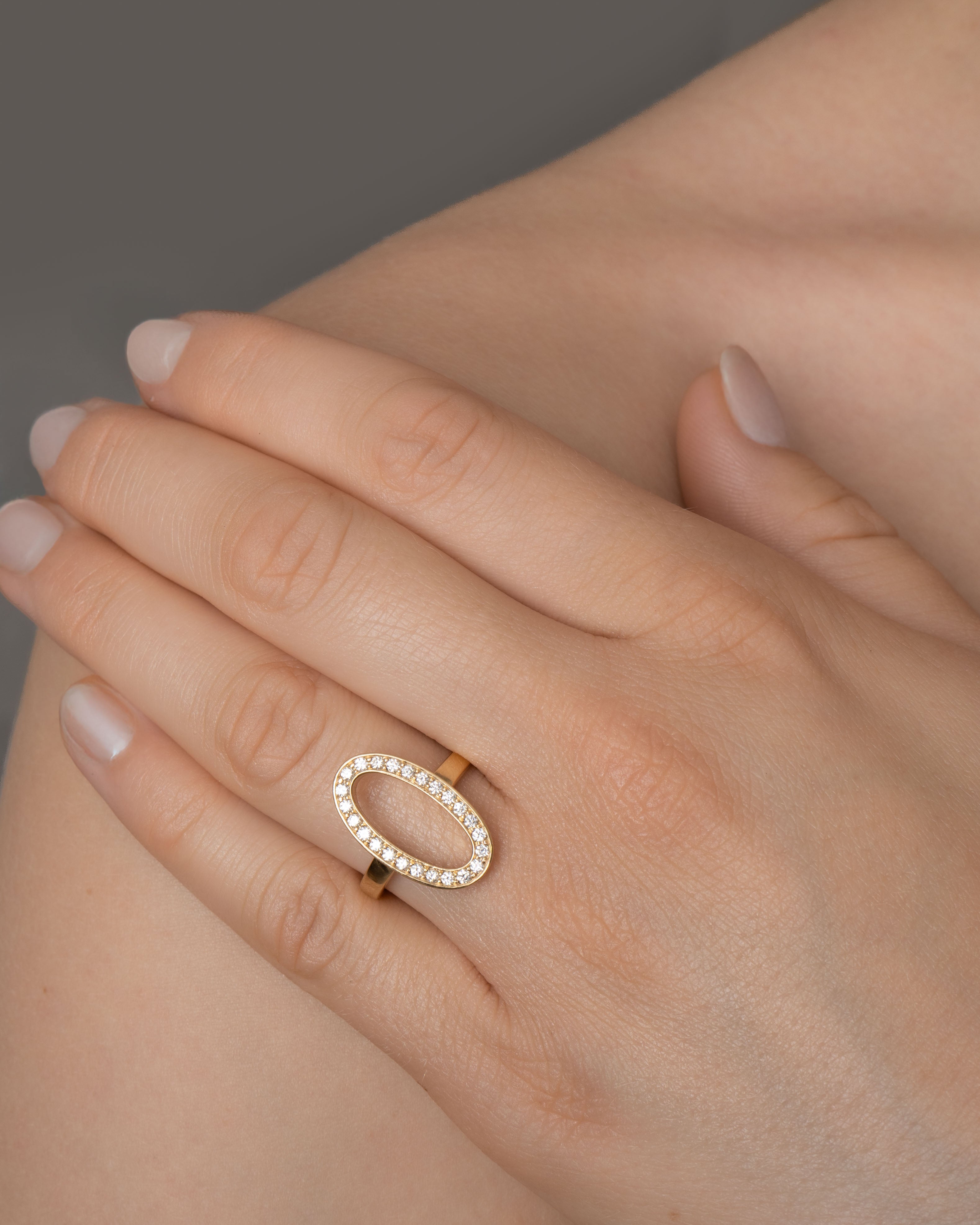 Med sin høje silhuet, markerede ringskinne og ovale åbning bevarer designet en luftig elegance. Samspillet mellem stram geometri og bløde kurver gør Glow-ringen til et studie i kontraster - et smykke, der føles både kraftfuldt og raffineret.