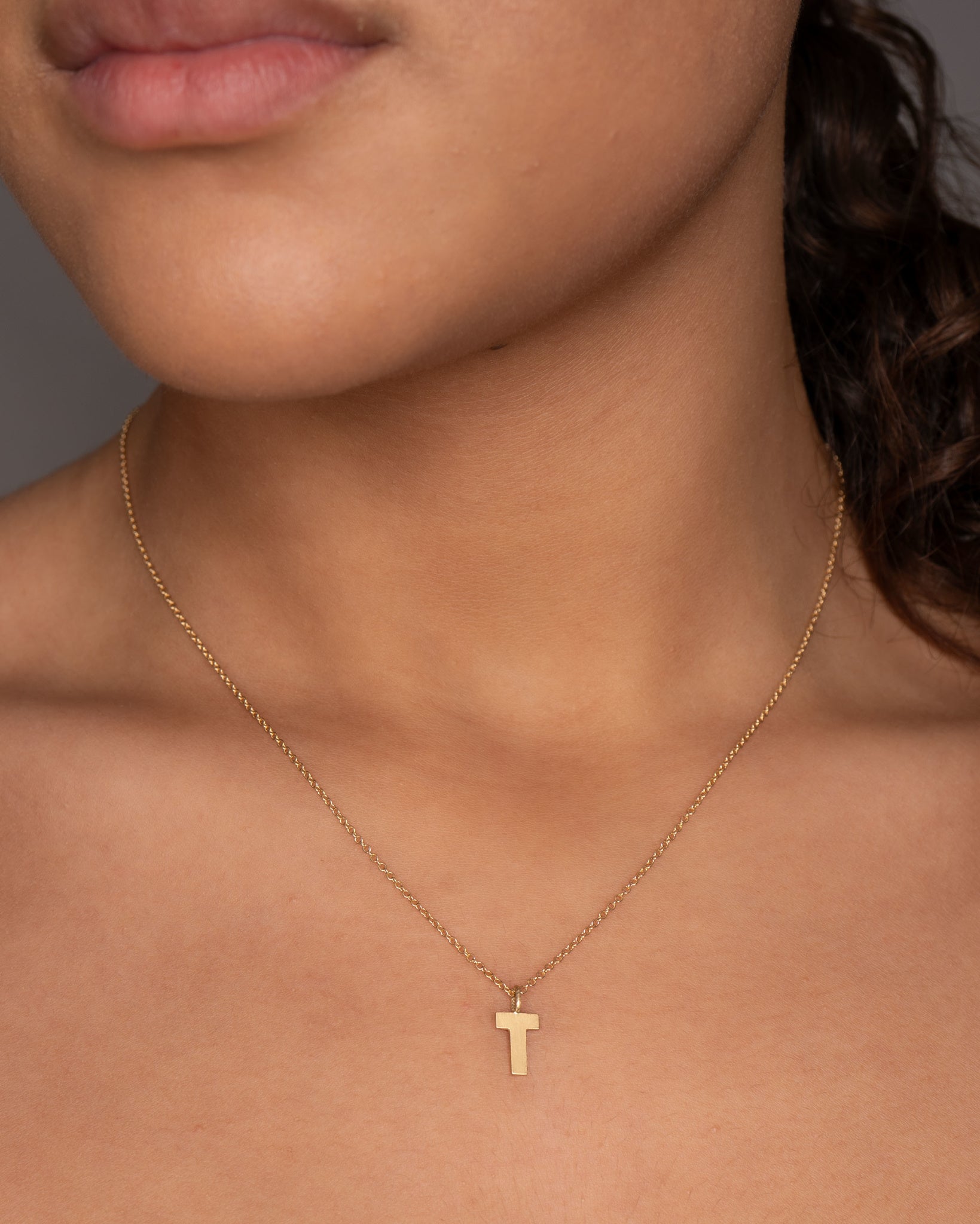 På trods af det skarpe udtryk, falder Letter T vedhænget smukt ind mod huden og gør det behageligt at have på.