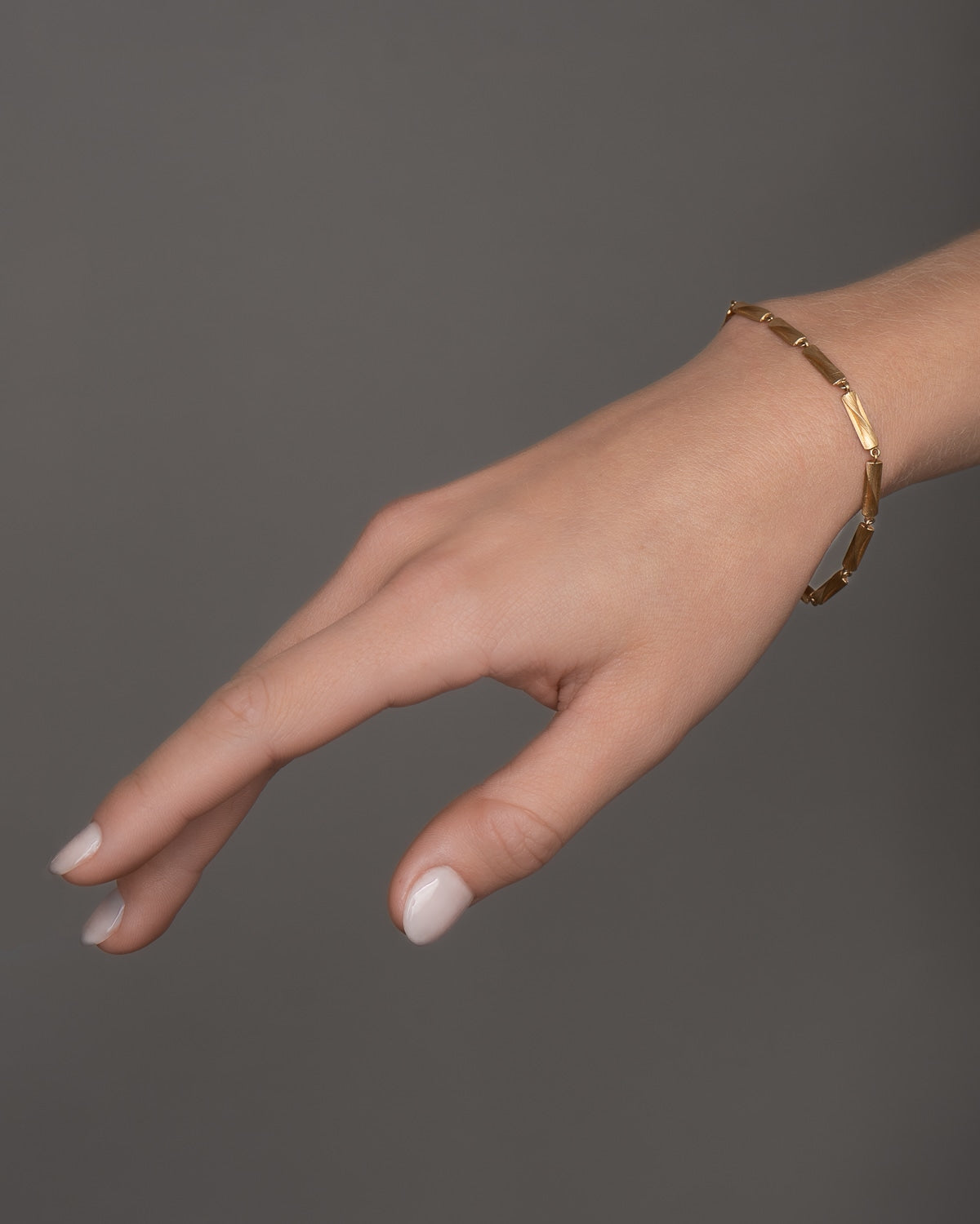The Vega Relief bracelet is created from small, movable links that fit nicely on your wrist. The bracelet is comfortable to wear, and it quickly becomes a part of you and your personal look. The small movements and surfaces in the reliefs catch the light when you move, and send it towards the wrist, which is bathed in a golden light.