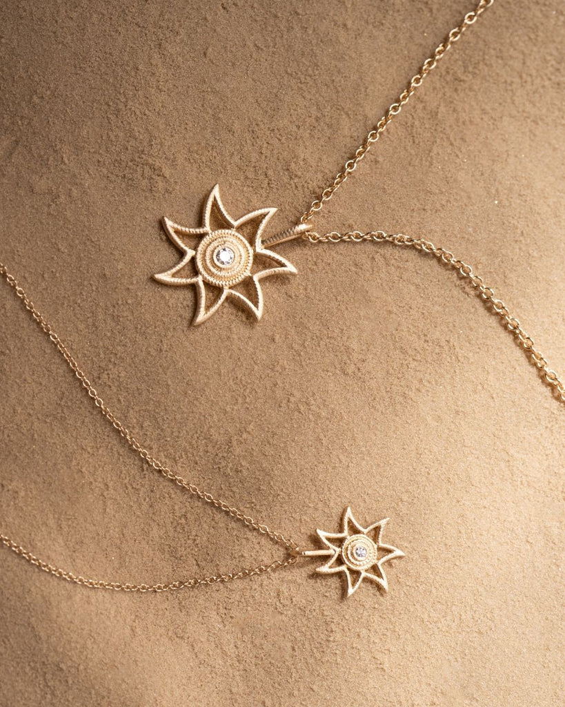 The Sun Pendants represent light, energy, and the unique strength that Dulong jewelry brings to its wearer. A legacy piece from Dulong’s earlier collections, the Sun Pendant is now reimagined with even greater presence and striking elegance — a piece that catches both the light and the eye.