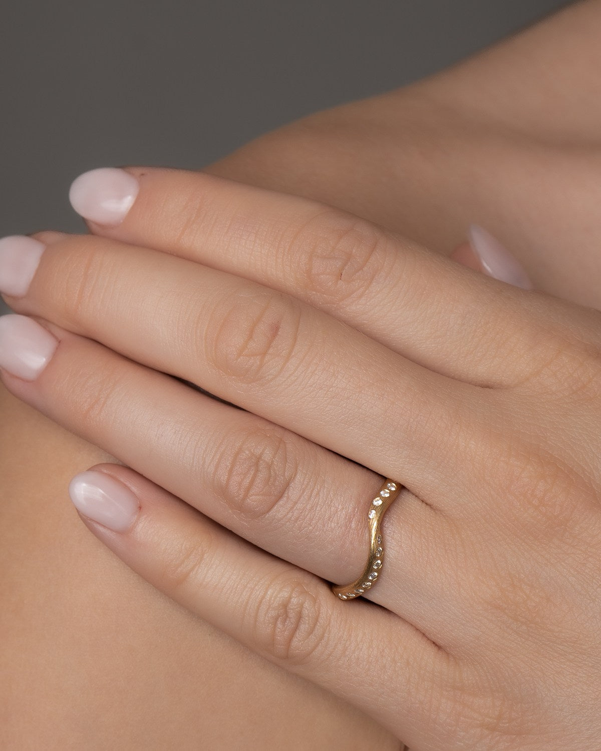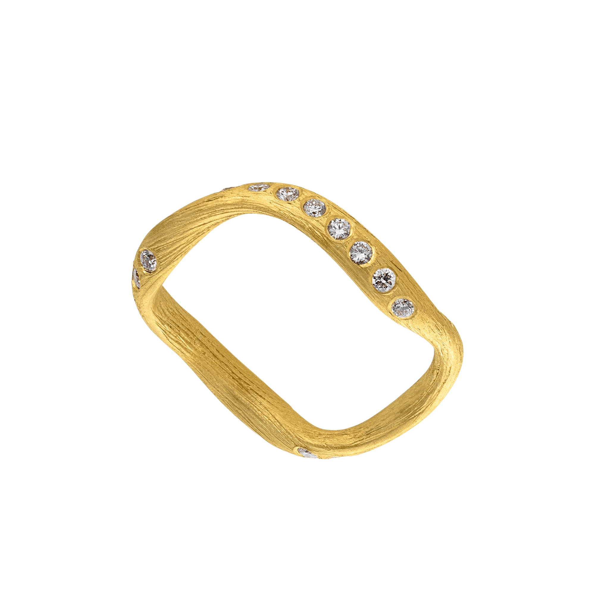 Navnet VEGA udspringer af kreativitet, modernitet og fleksibilitet, hvilket er essensen af denne kollektion, som består af ringe og et armbånd i silkemat guld