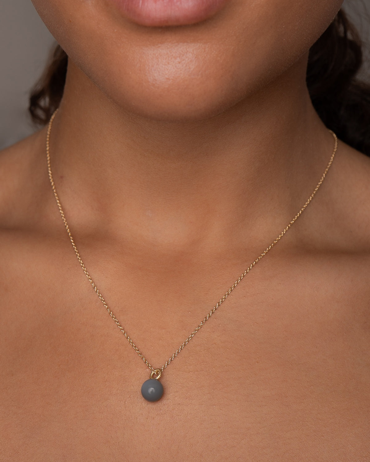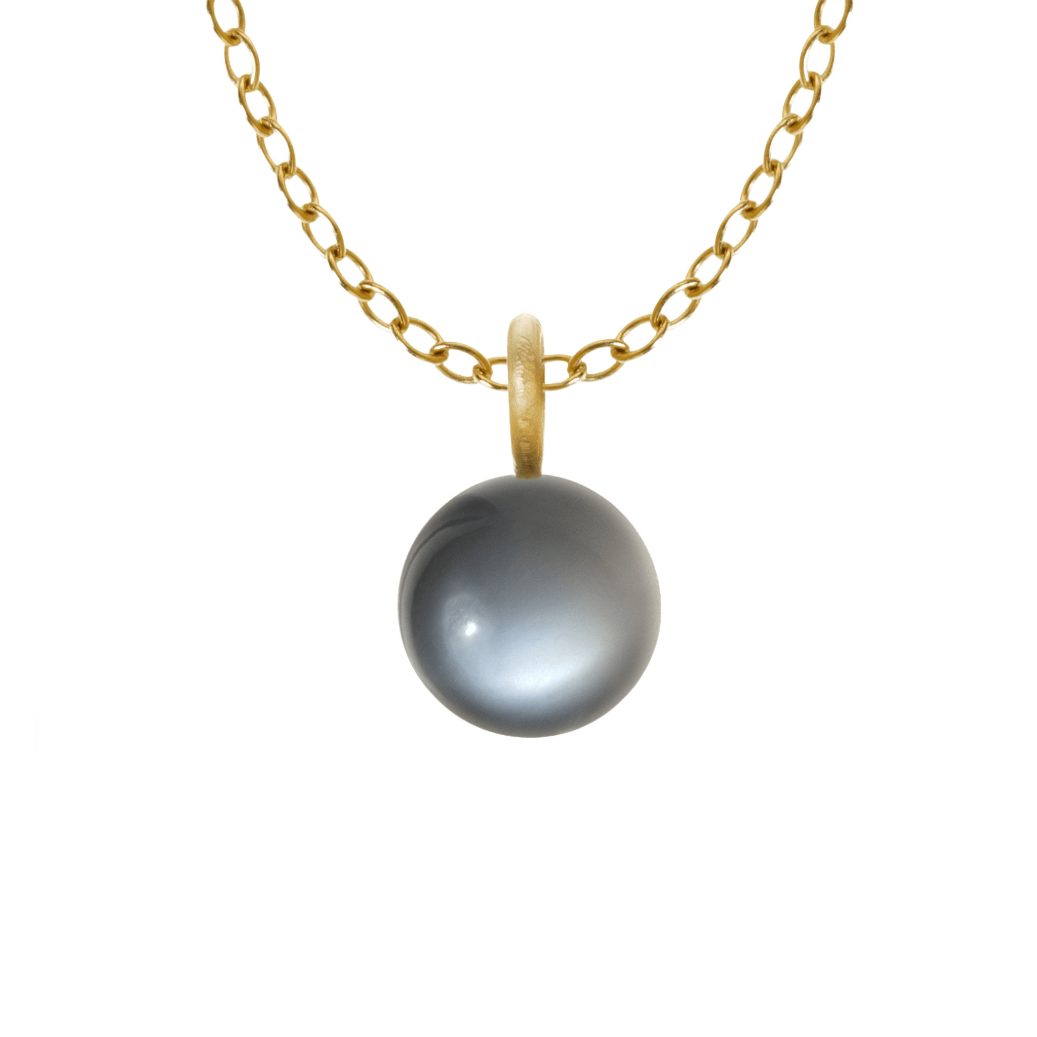 Globe vedhæng med månesten passer smukt til de andre smykker fra denne kollektion, men er også skabt til at blive båret med Dulong smykker på tværs af kollektionerne.
