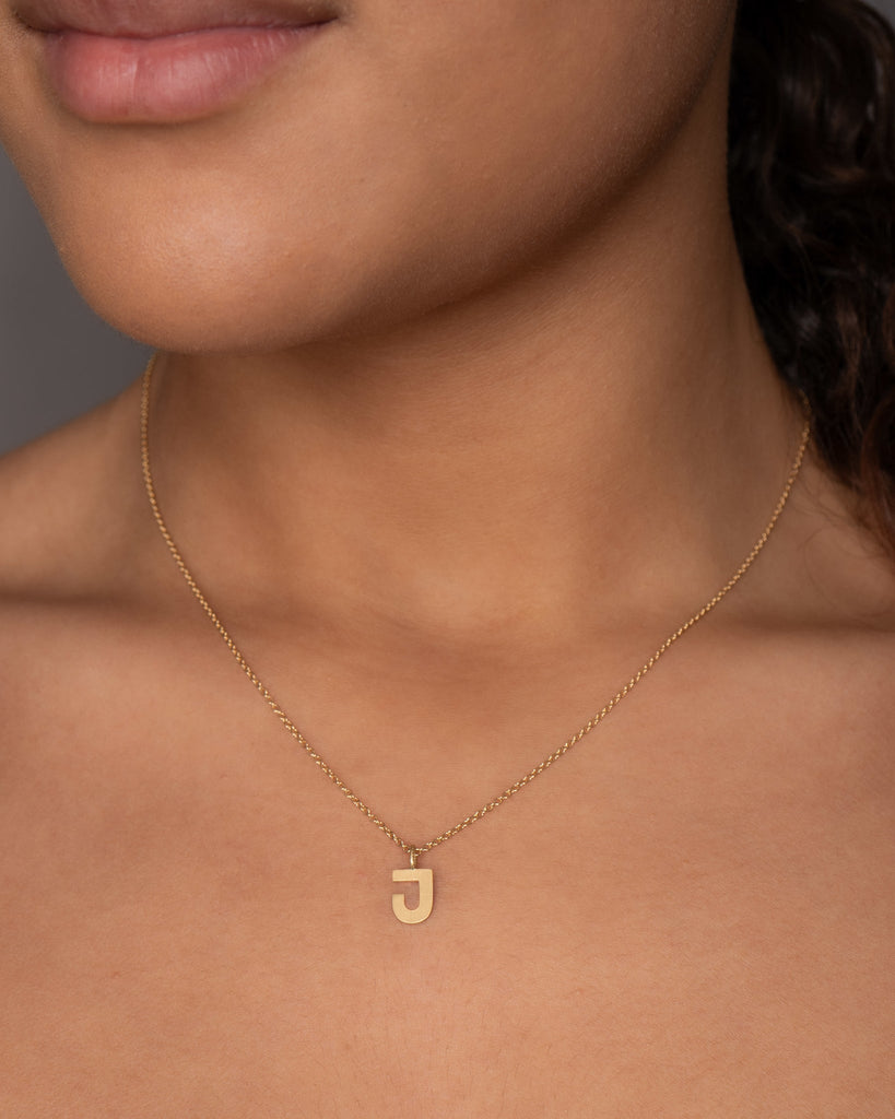 På trods af det skarpe udtryk, falder Letter J vedhænget smukt ind mod huden og gør det behageligt at have på.