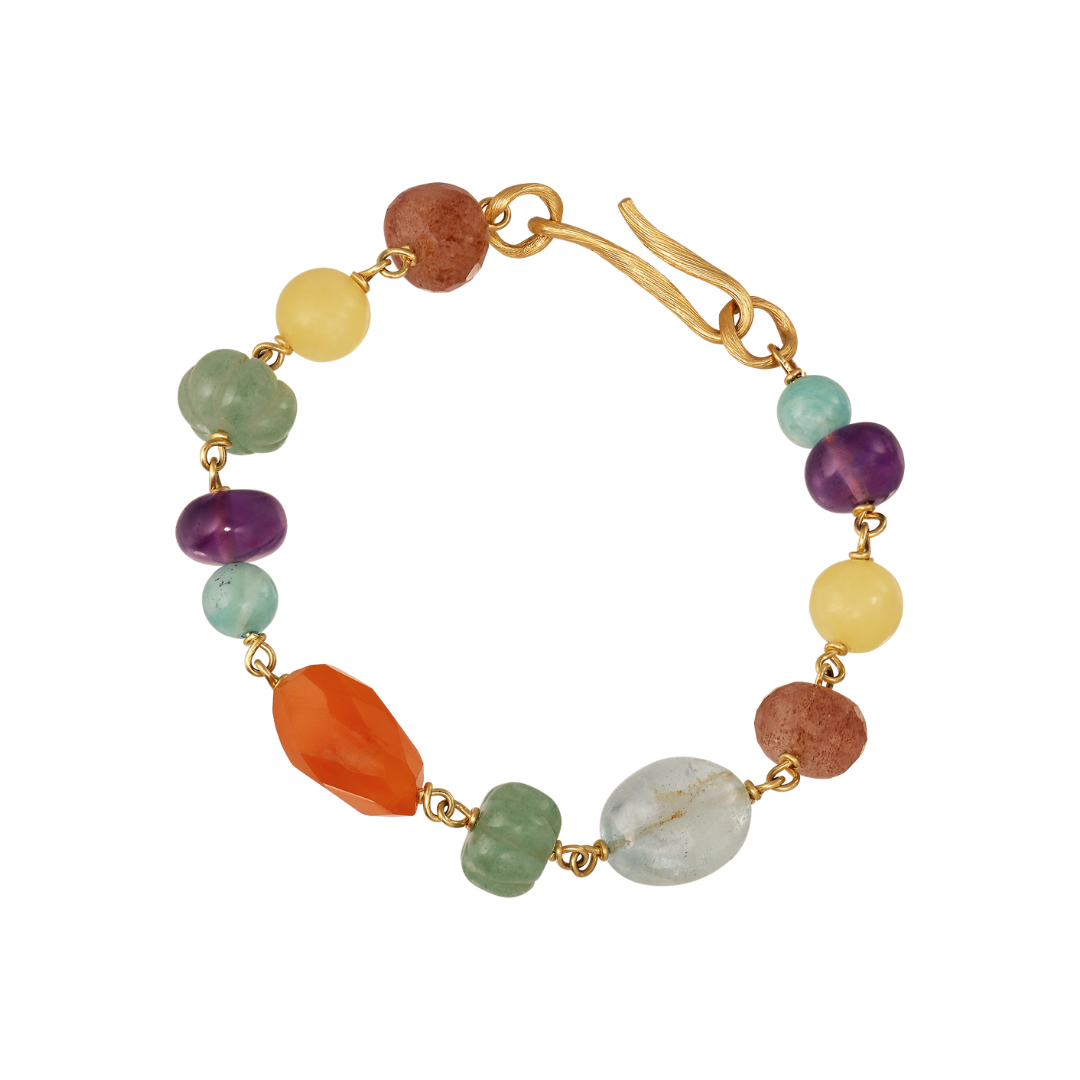 18K guld med gul aventurin, akvamarin, grøn strawberry kvarts, ametyst, karneol, rød strawberry kvarts og amazonit