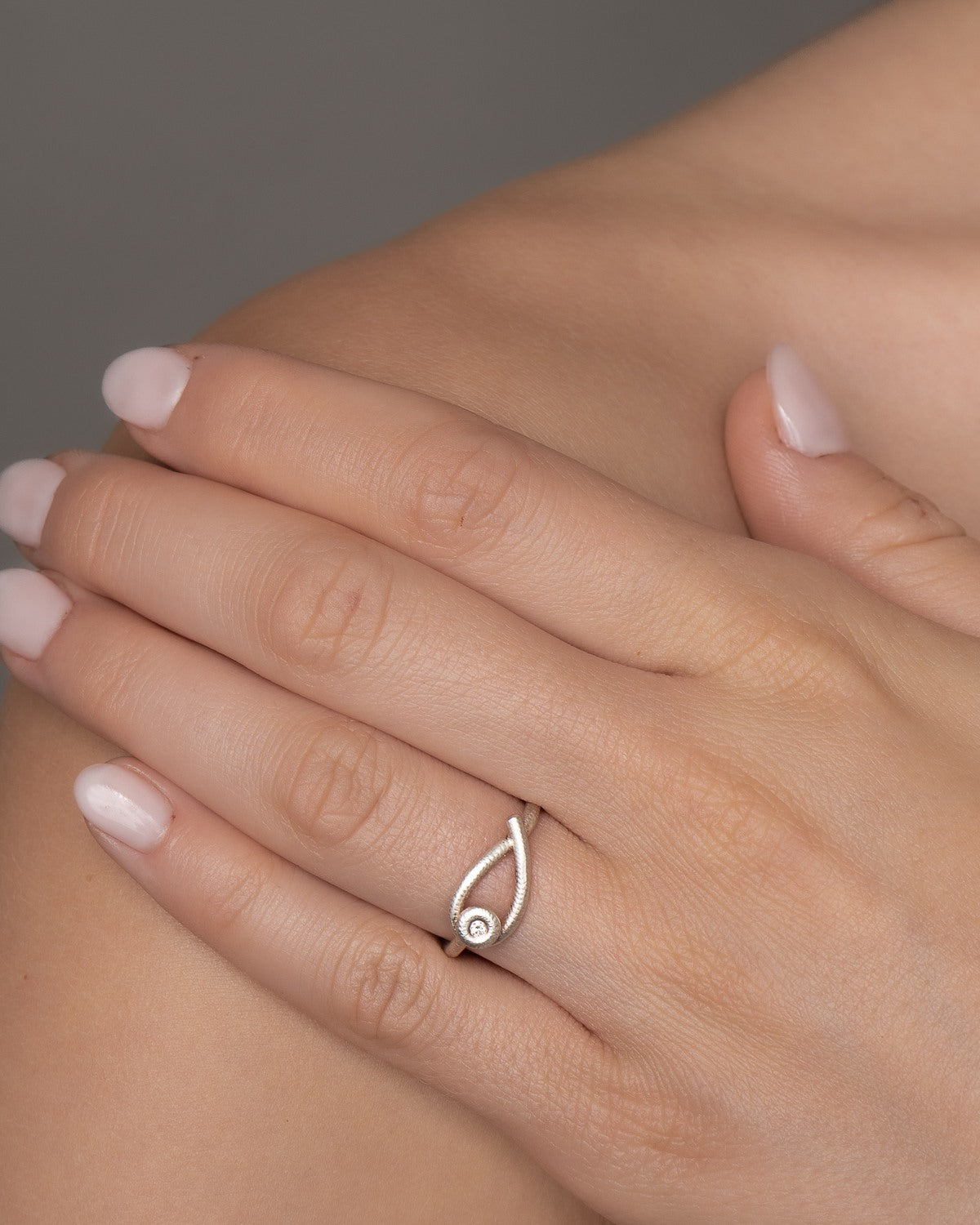Kharisma ringen er skabt i et tidløst og glamourøst design. Den smukke kurve er ikonisk i sin enkelhed. Den håndfilede, riflede overflade og den smukke diamant leger med lyset, når du bevæger hænderne.