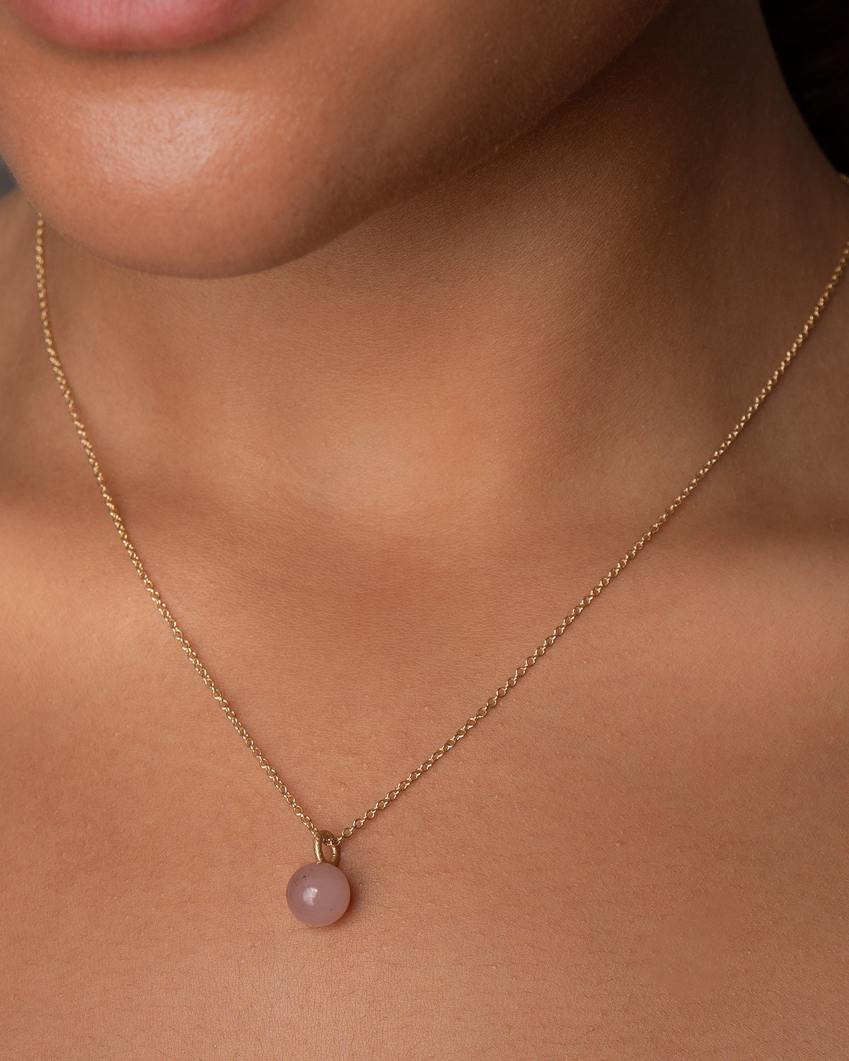 Globe vedhæng med guavakvarts passer smukt til de andre smykker fra denne kollektion, men er også skabt til at blive båret med Dulong smykker på tværs af kollektionerne.