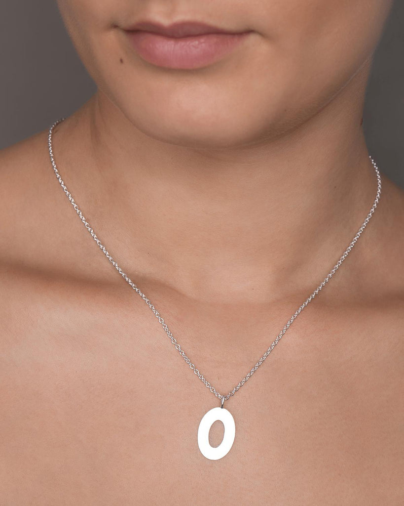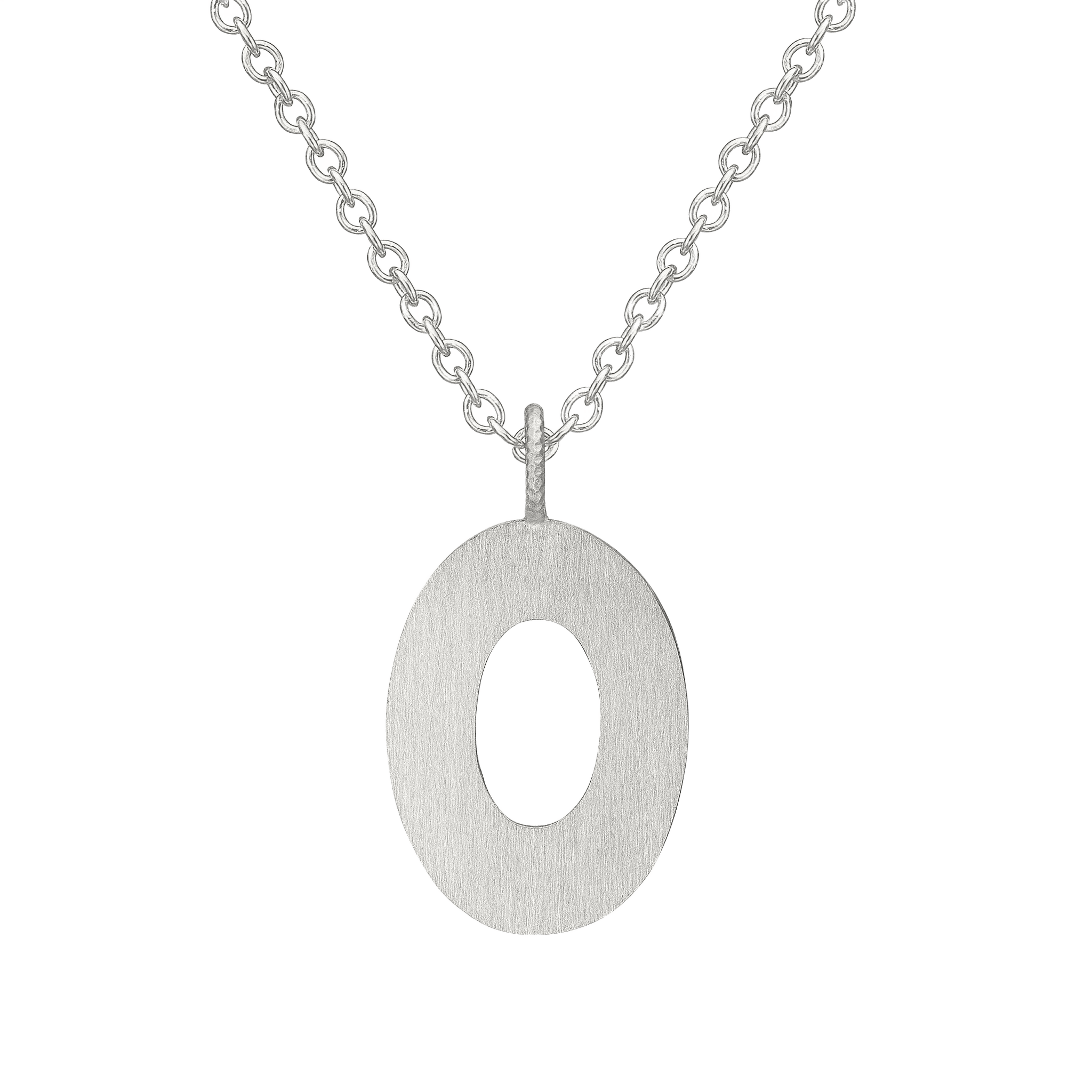 Letter O vedhænget har en silkemat overflade, som får sølvets kølige farve til at fremhæves og skinne indtagende ud i rummet.