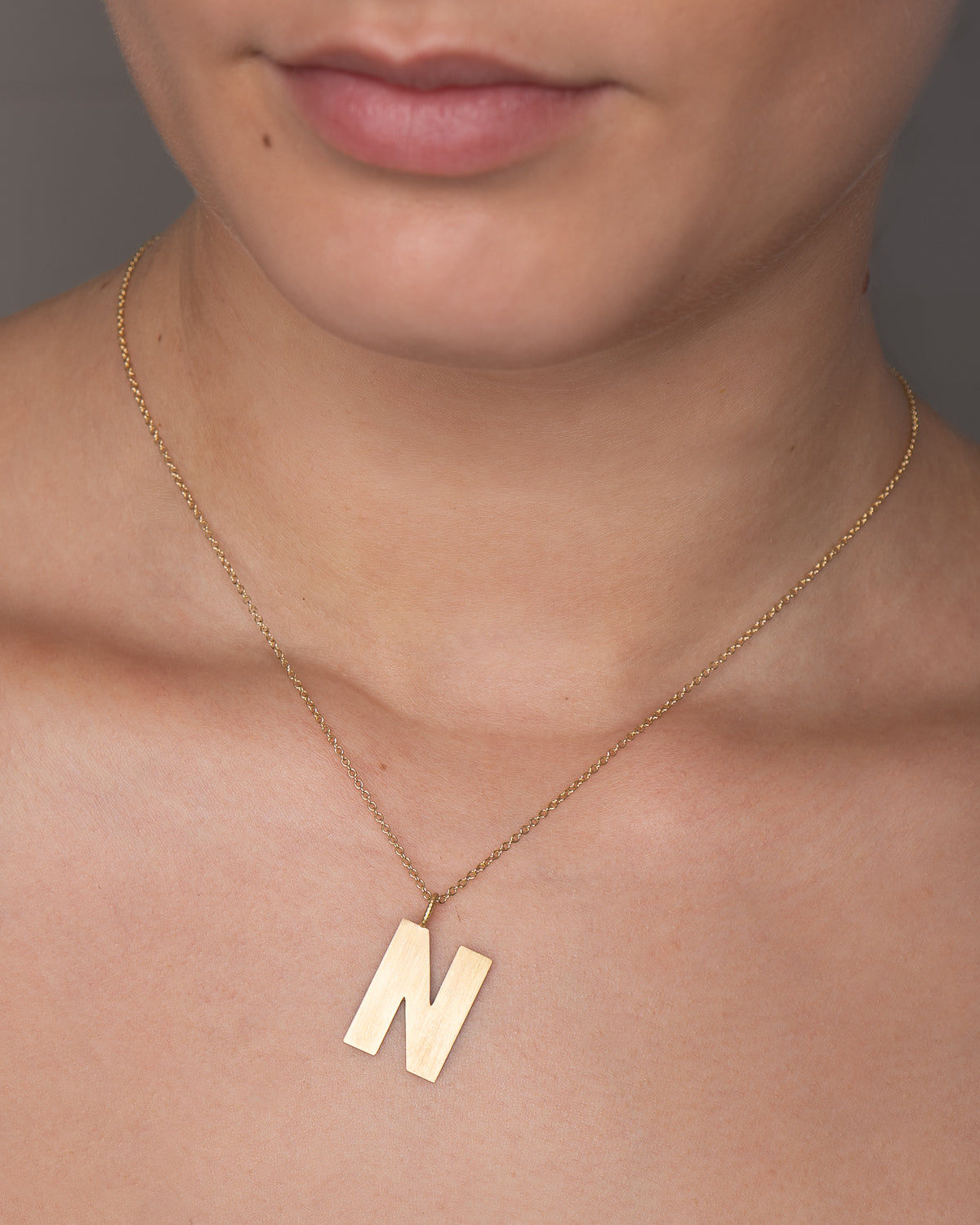 På trods af det skarpe udtryk, falder Letter N vedhænget smukt ind mod huden og gør det behageligt at have på.