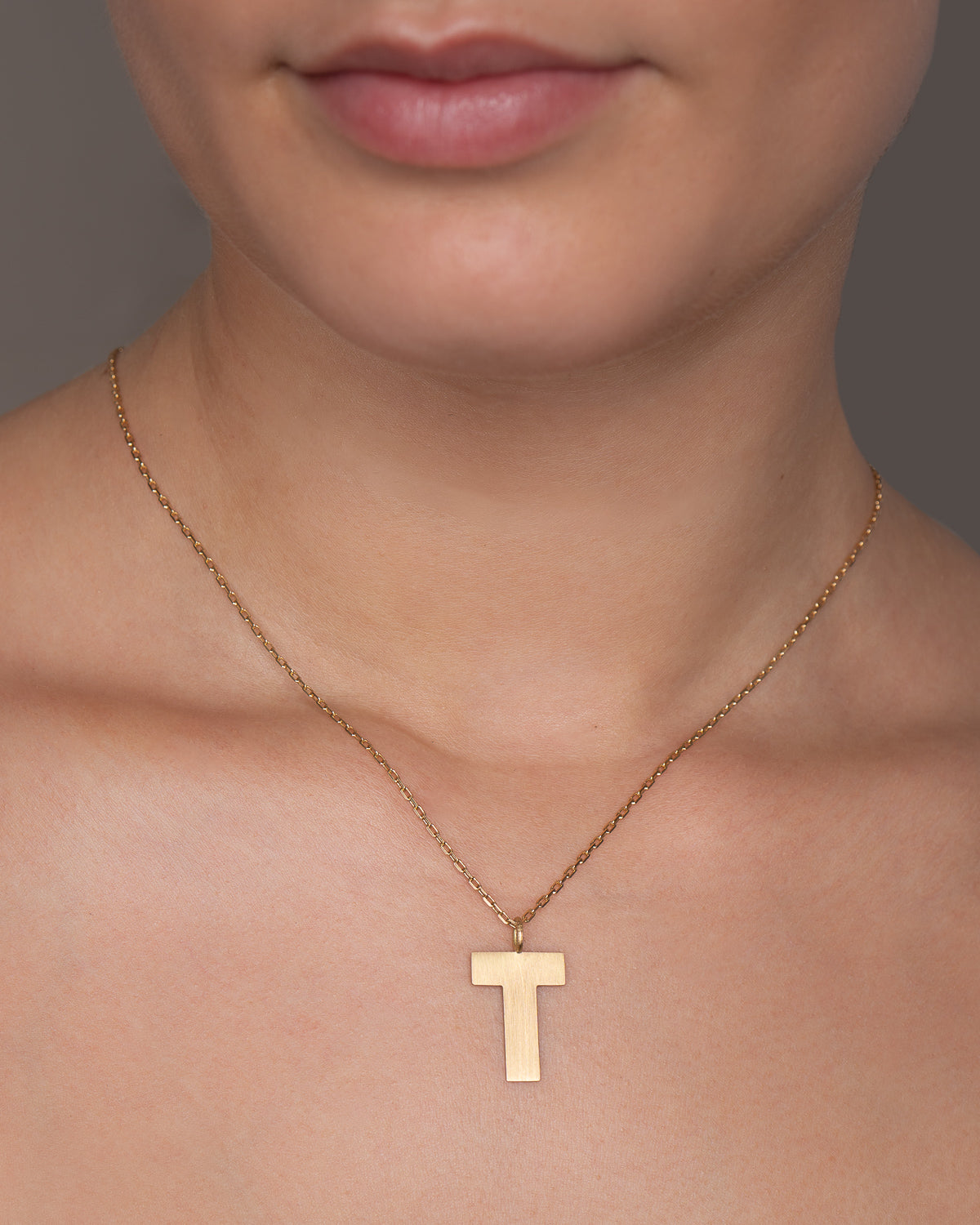 På trods af det skarpe udtryk, falder Letter T vedhænget smukt ind mod huden og gør det behageligt at have på.