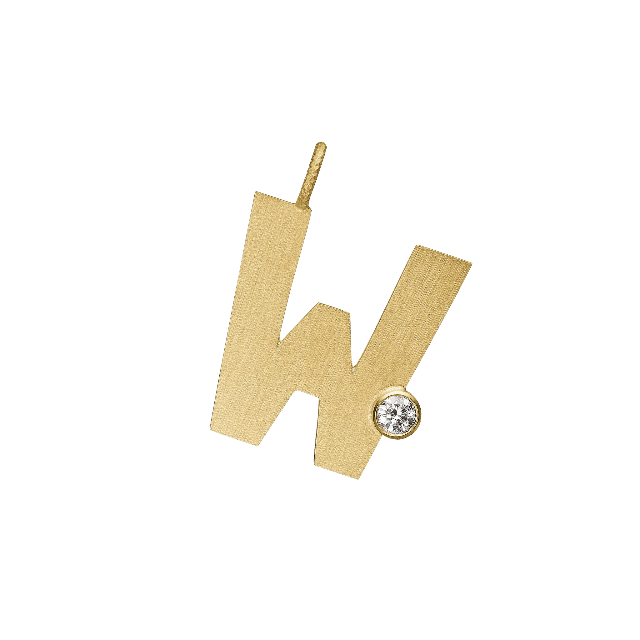 Letter W i guld 18 K fremhæver smukt din huds naturlige glød, fordi vedhænget har en dyb, varm og glansfuld farve. En funklende brillant reflekterer lyset og får det til at spille flot i bogstavets silkematte overflade.