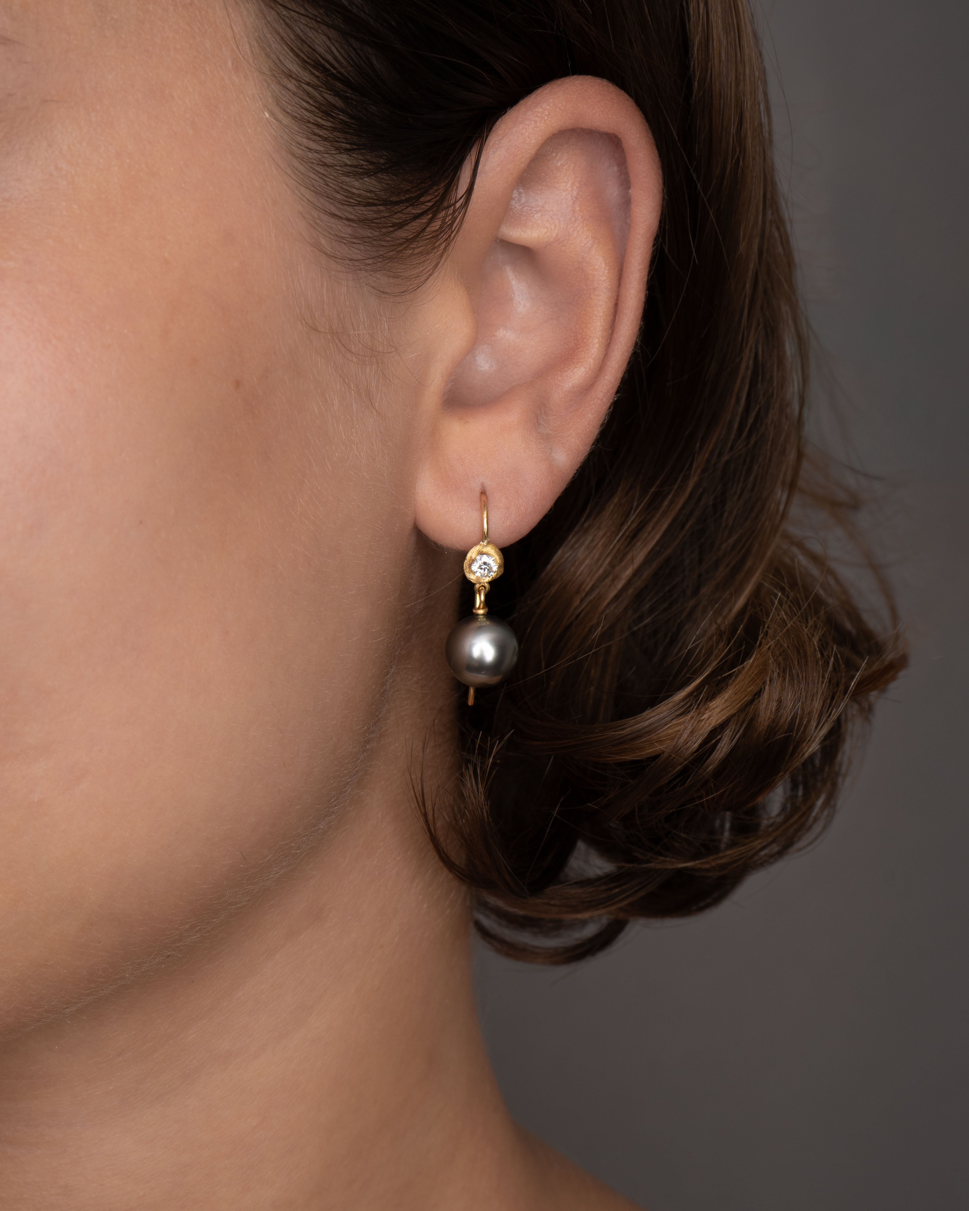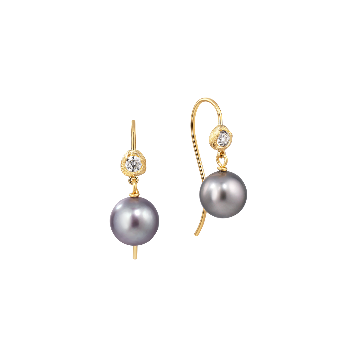 18K guld med med Tahitiperler og2 brillanter. I alt 0,26 ct. F/G, vs, Ex. cut.