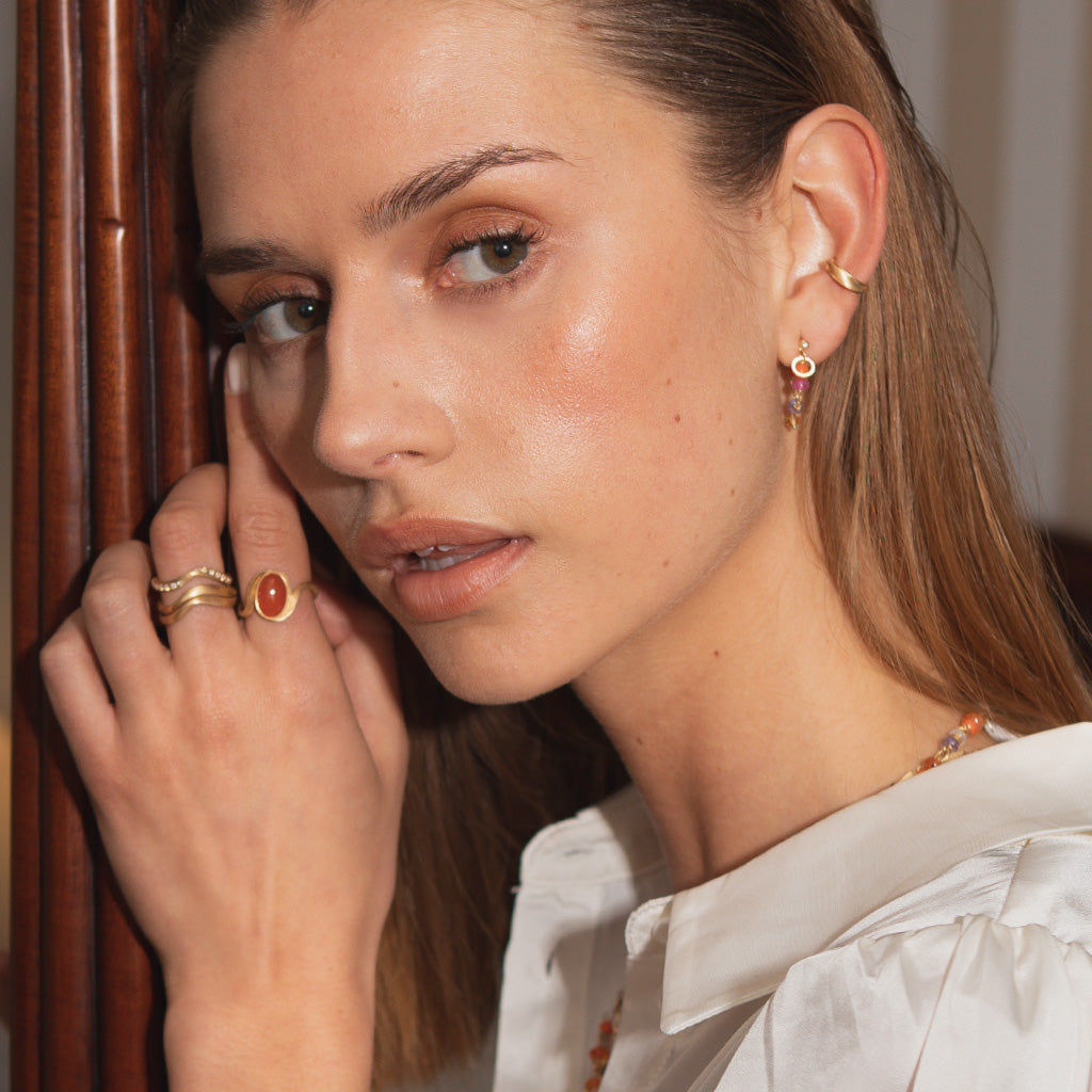 Namnet Vega härstammar från kreativitet, modernitet och flexibilitet, vilket är kärnan i denna kollektion, som består av ringar och ett armband i sidenmattguld utformat i visuellt flytande rörelser. Ringen och armbandets ytor följer smyckets rörelse. Ringarna är mycket smickrande för handen och kommer att ge ett annorlunda utseende beroende på hur de sätts ihop.