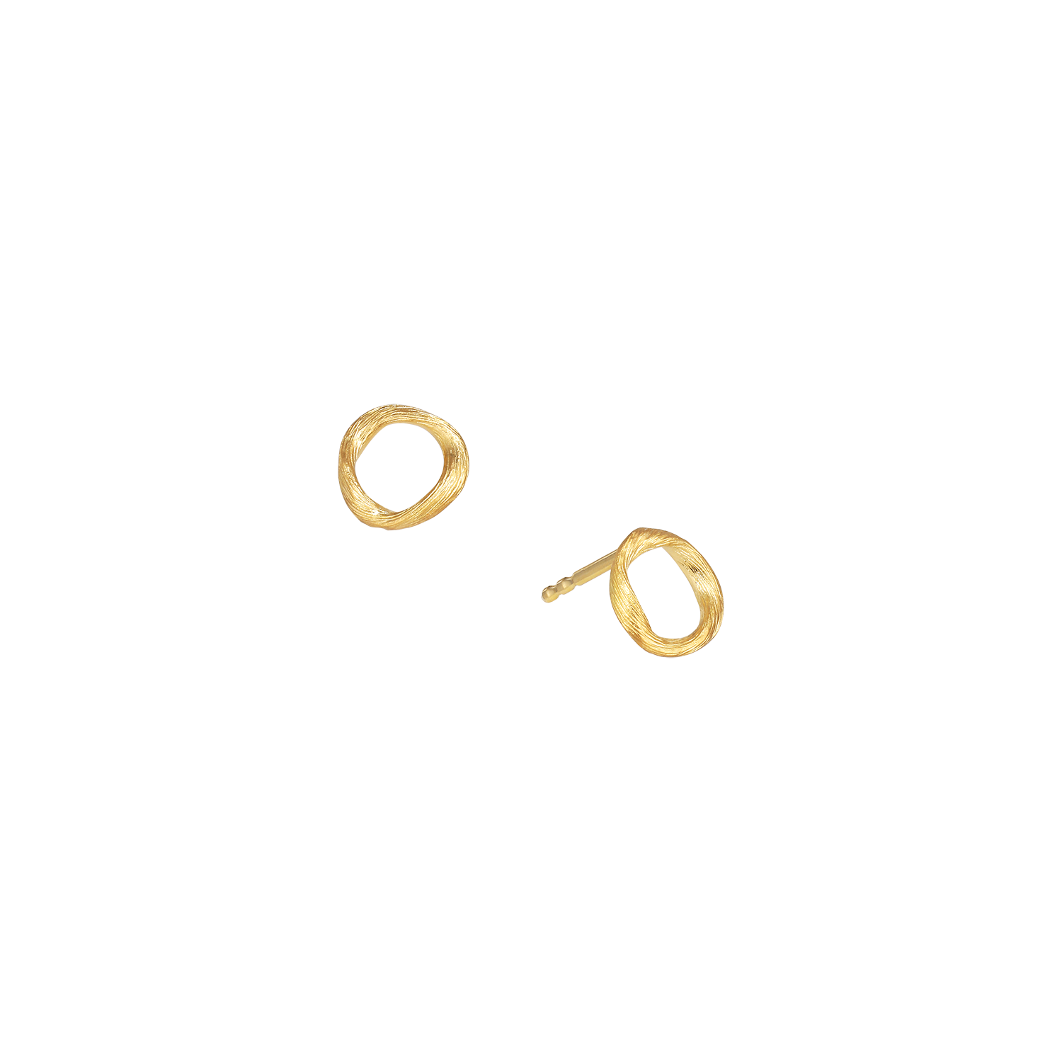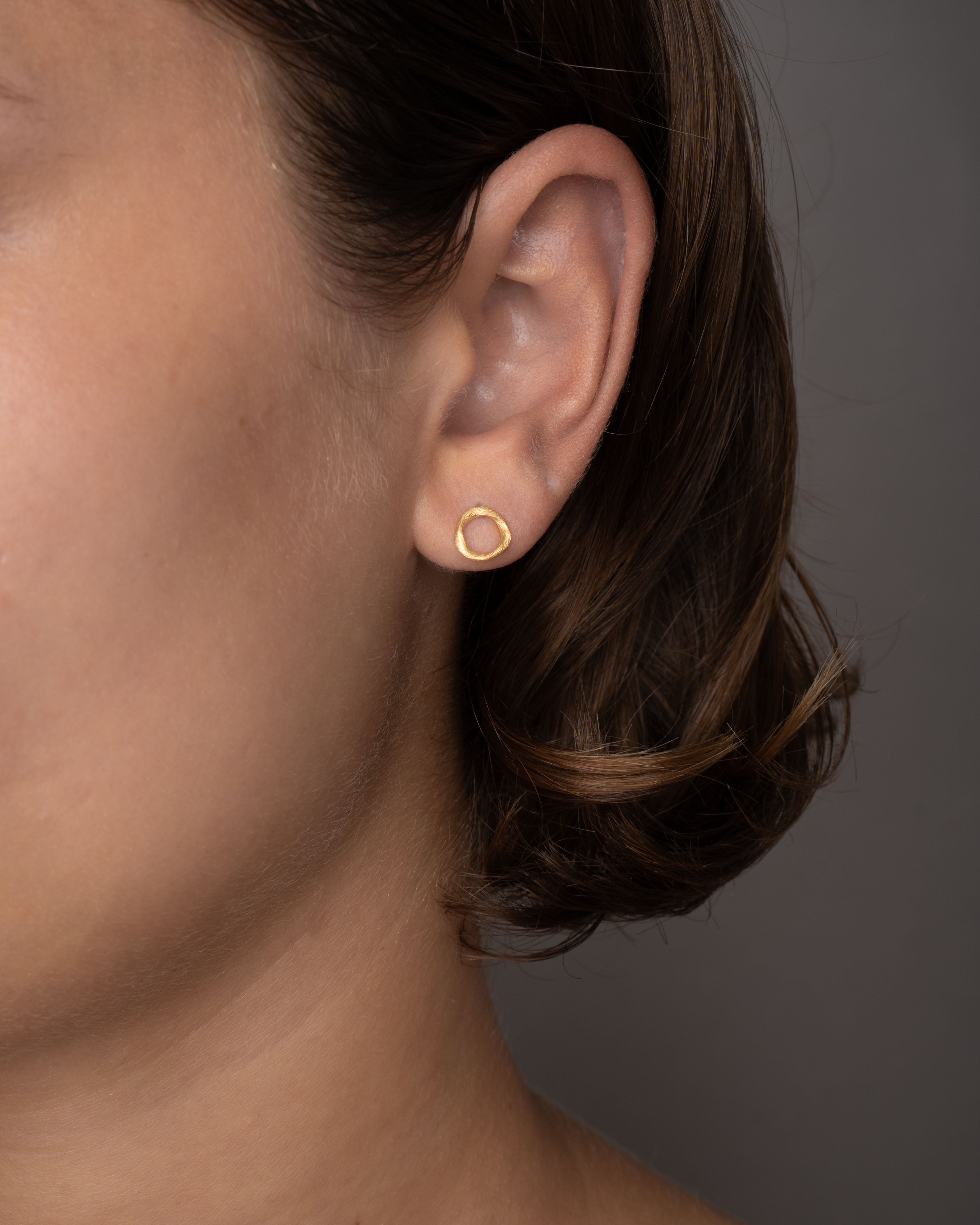 Vega Loop ørestikkerne er skabt i 18 kt. guld med Dulongs karakteristiske børstede overflade, der giver en sanselig tekstur og et smukt spil i lyset. Den organiske form er inspireret af sandbankernes bløde landskaber og tilfører øreflipperne en yndefuld fornemmelse af energi og bevægelse.