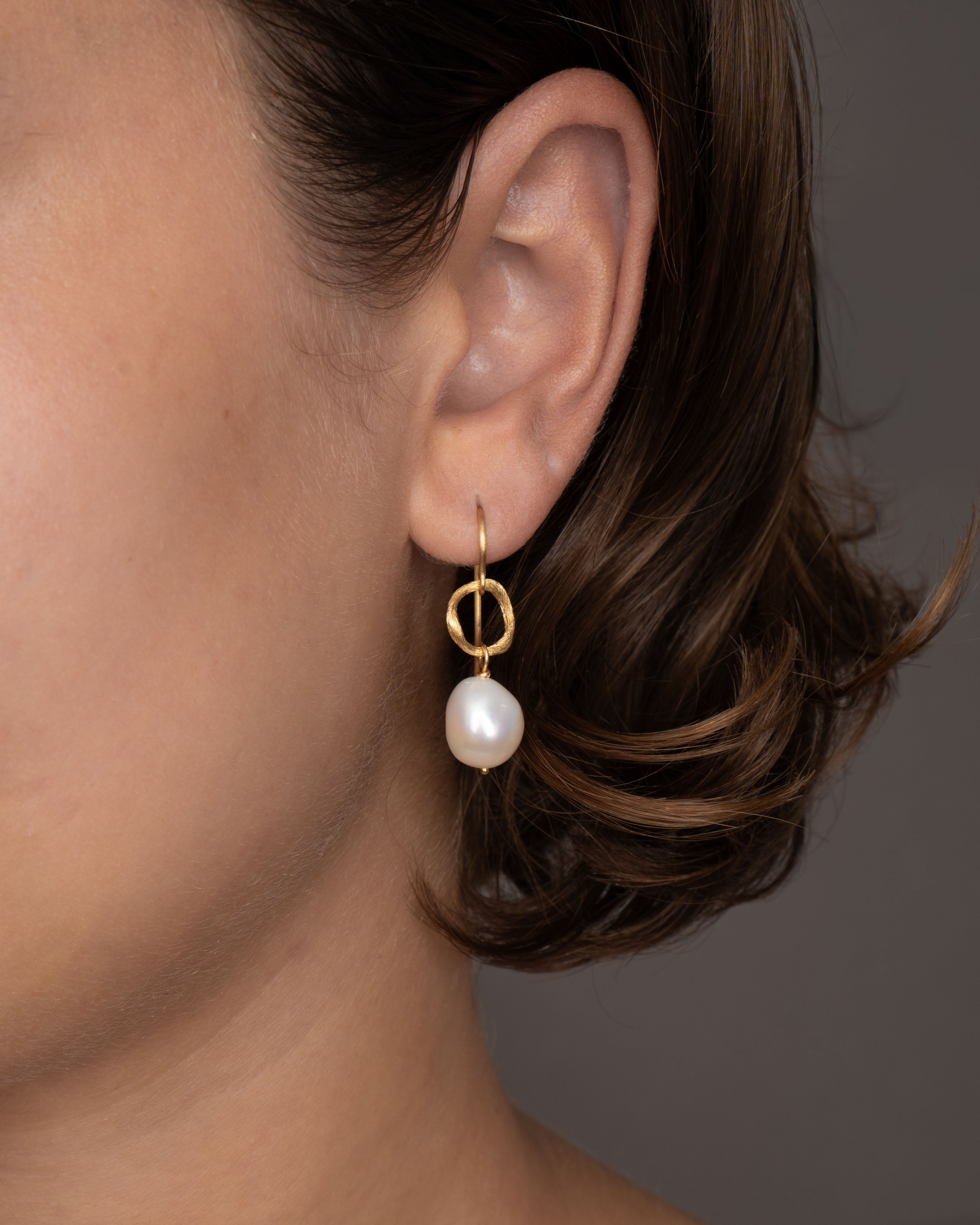 Med deres enkle organiske design og karakteristiske gyldne skær, er Vega Loop Øreringene alsidige og velegnede til både hverdag og særlige anledninger. Ferskvandsperler i samspil med Dulongs signaturmatte guld tilfører hverdagen liv og skaber et raffineret skær til aftenselskaber.