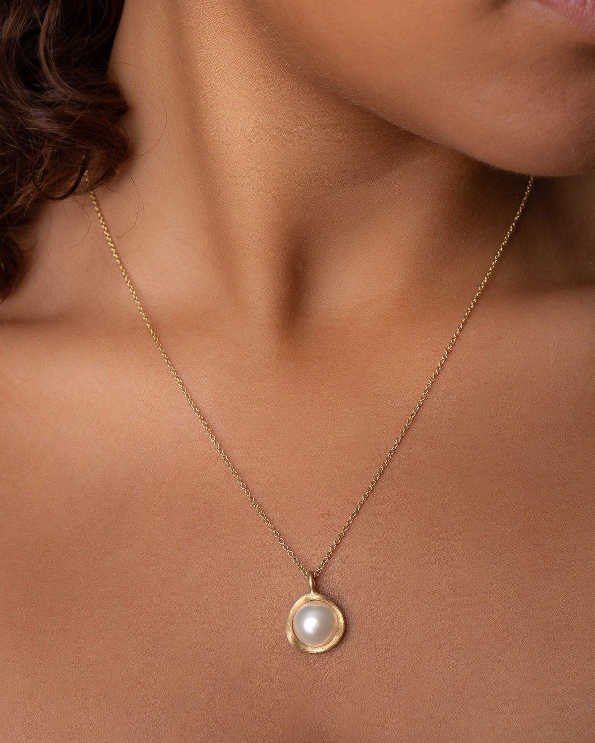 Det store Vega Pearl vedhæng er en delikat hyldest til naturens enkle skønhed. Håndlavet i 18 karat guld, omkranser det organiske design en strålende ferskvandsperle, hvis silkebløde overflade står i smuk kontrast til det matte guld. Vedhængets form skaber et subtilt, men sofistikeret udtryk, der udstråler tidløs elegance. Perfekt til at bære alene eller sammen med andre smykker, dette vedhæng bringer et strejf af luksus og naturlig skønhed til enhver stil.