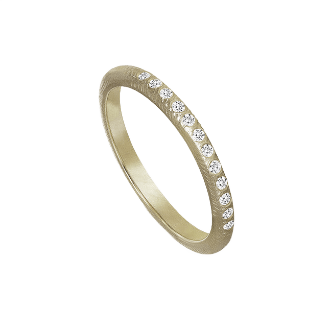 Den smalle Curve ring med brillanter er en smuk og enkel vielsesring eller som et alternativ til den klassiske alliancering. Den er også skøn at sætte sammen med andre ringe fra vores kollektioner og skabe dit eget, personlige udtryk.