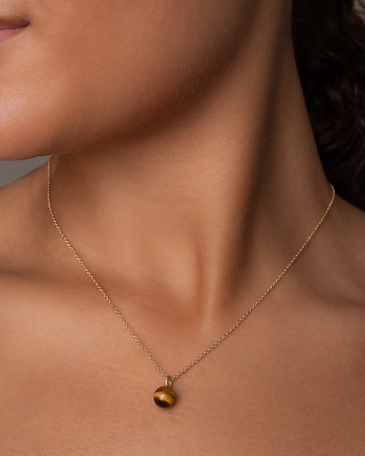 Globe vedhæng med tigerøje kommer i guld 18 K og sølv.