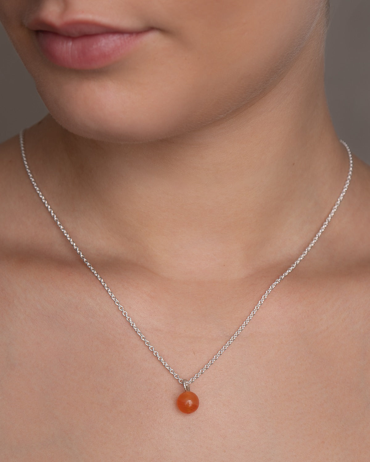 Globe vedhæng i sølv med den varme og dybe, orange karneol.