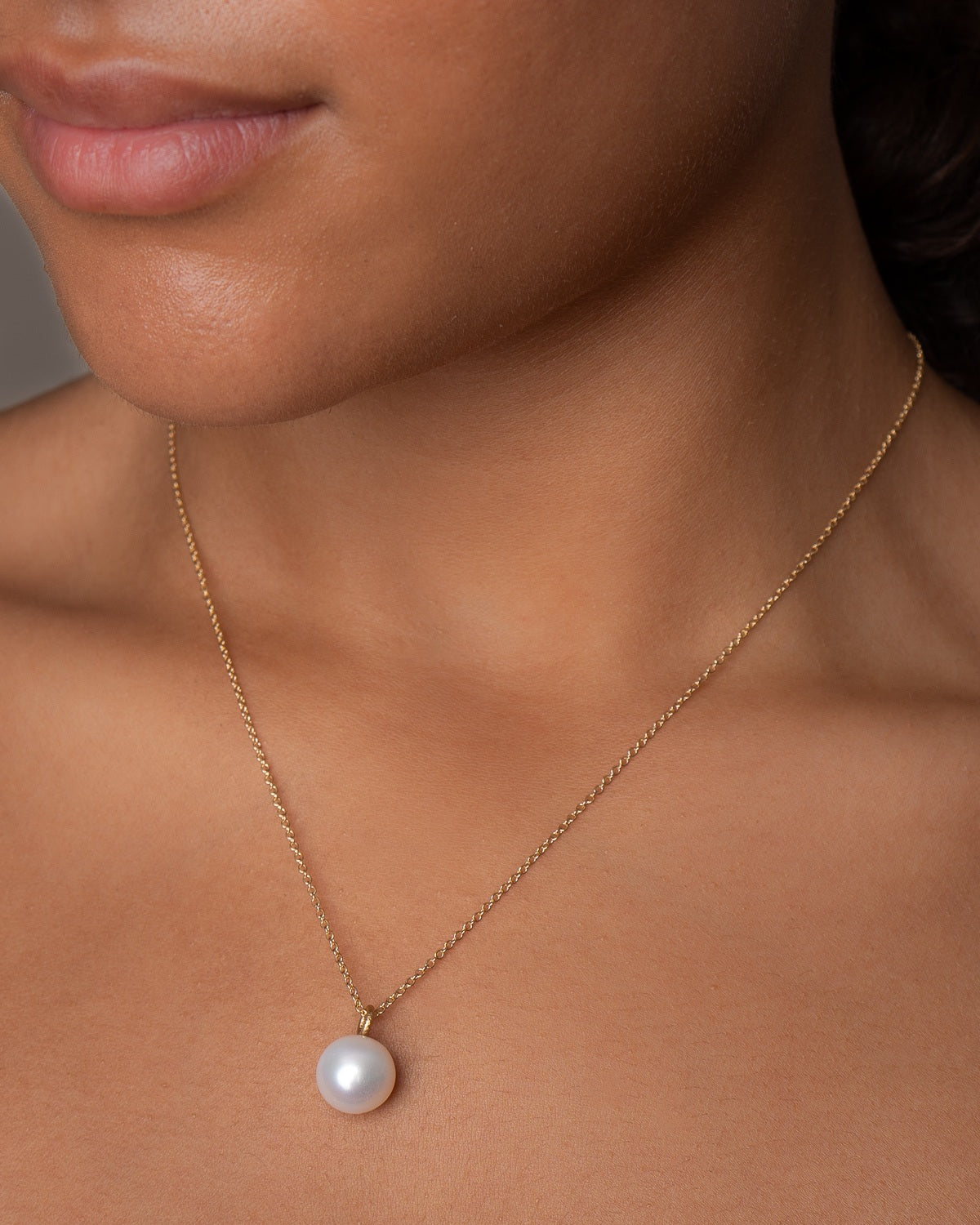 Vedhænget med en stor funklende ferskvandsperle kaster et blidt lys over huden og er både klassisk og glamourøst. Globe vedhæng med stor ferskvandsperle kan bæres i en lang eller kort kæde om halsen. Vælg fx vores Stream kæde. Smykket passer smukt til de andre smykker fra denne kollektion, men er også skabt til at blive båret med Dulong smykker på tværs af kollektionerne.