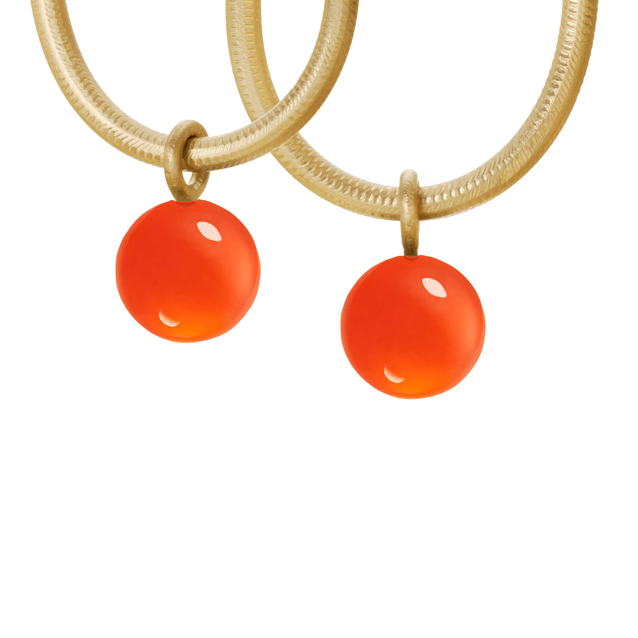 Globe vedhæng til øreringe, guld 18 K med den varme og dybe, orange karneol.