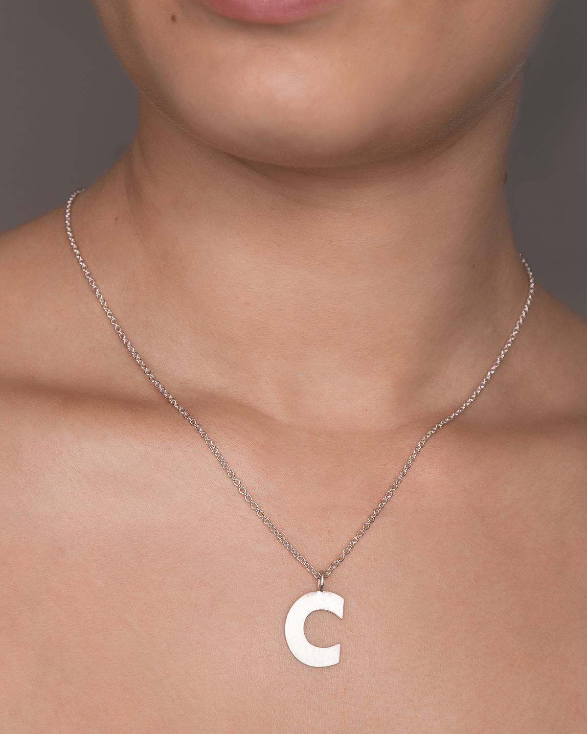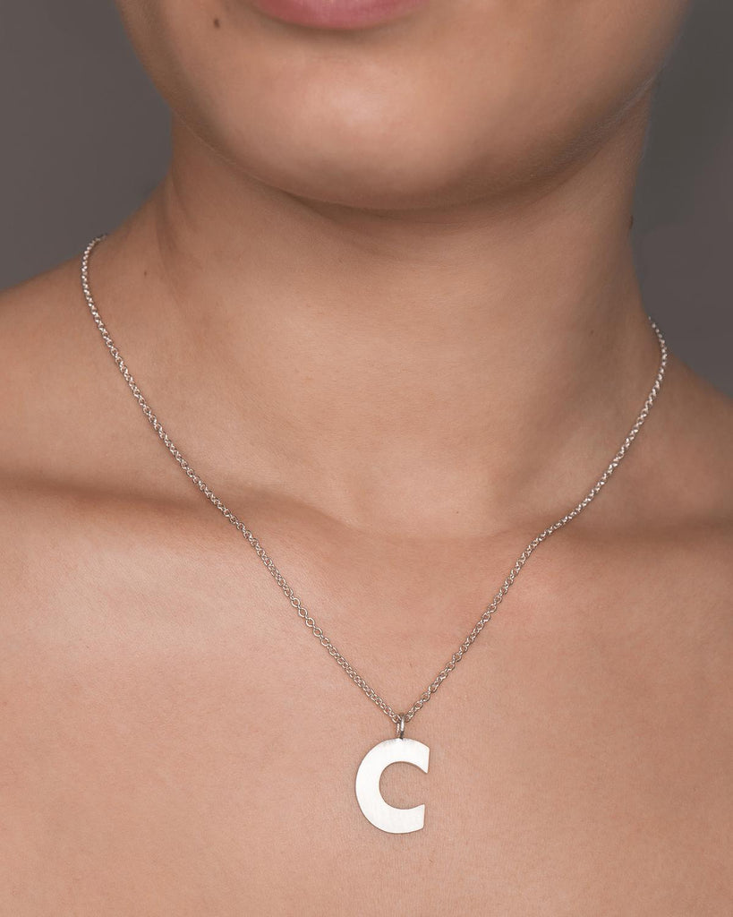 Letter C har en tidløs og ikonisk karakter der giver vedhænget et skarpt udtryk. På trods af Letters skarpe udtryk er vedhænget skønt at gå med, og du vil opleve, at det falder flot og behageligt ind mod huden.