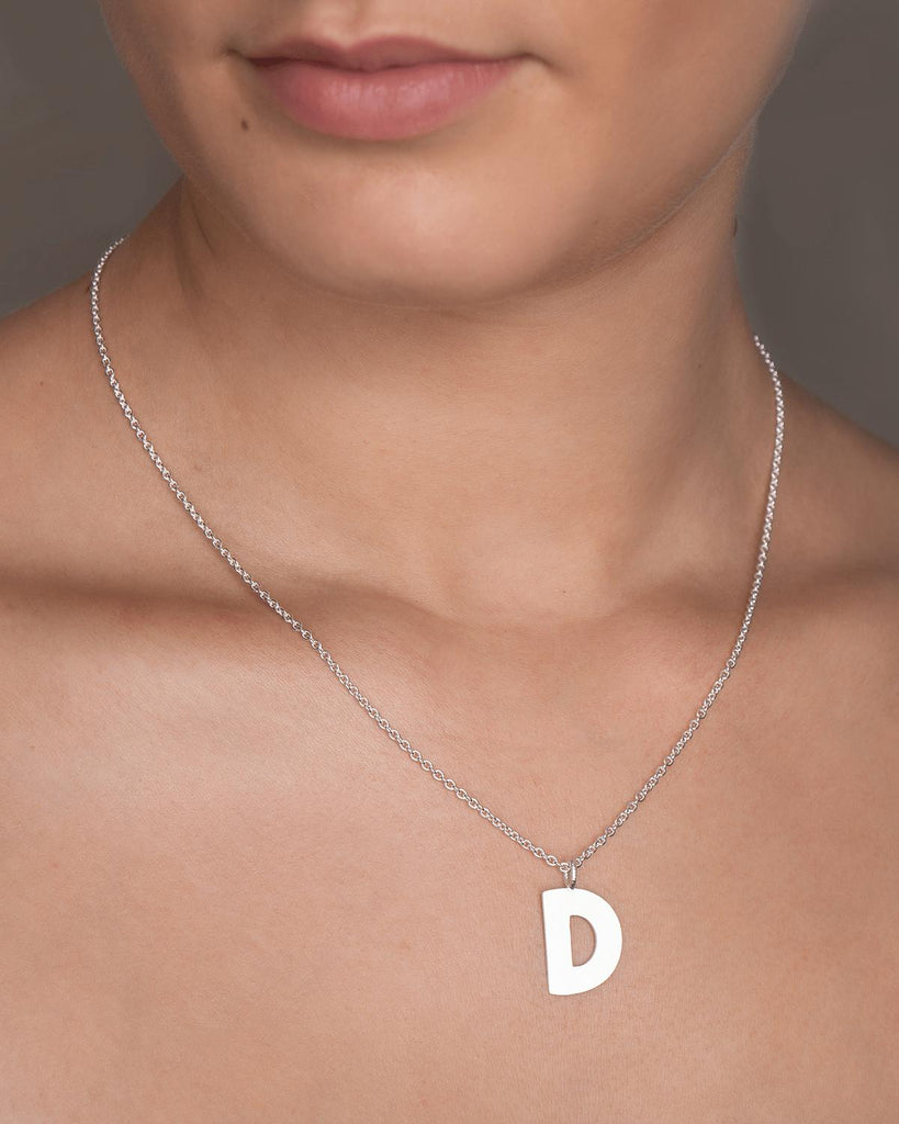 Læg mærke til, hvordan bogstavet falder naturligt og flot ind mod din hud, på trods af dets lidt skarpe udtryk. En halskæde du kan bruge til enhver lejlighed, den blender smukt og behageligt ind og bliver en del af dig.