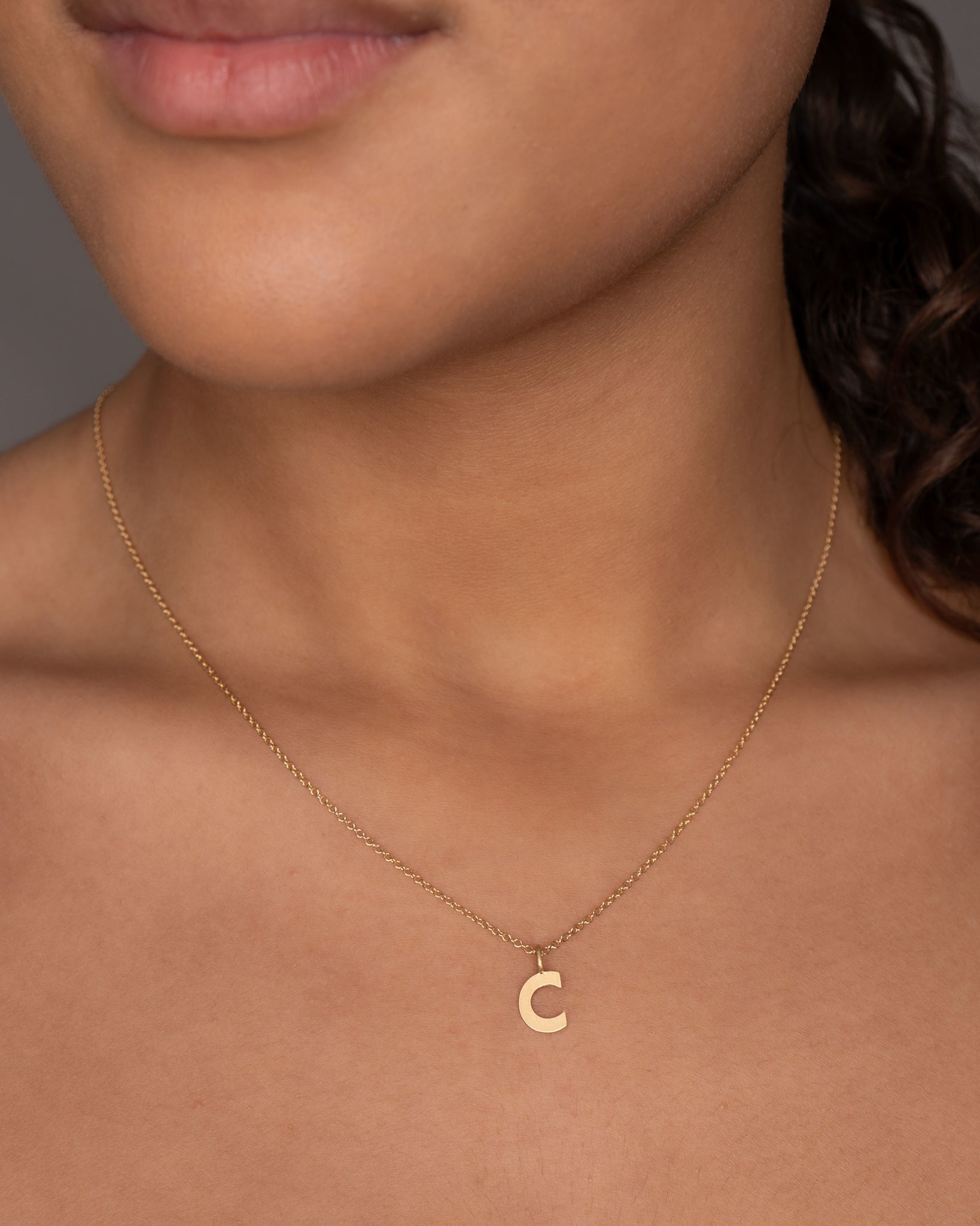 På trods af det skarpe udtryk, falder Letter C vedhænget smukt ind mod huden og gør det behageligt at have på.