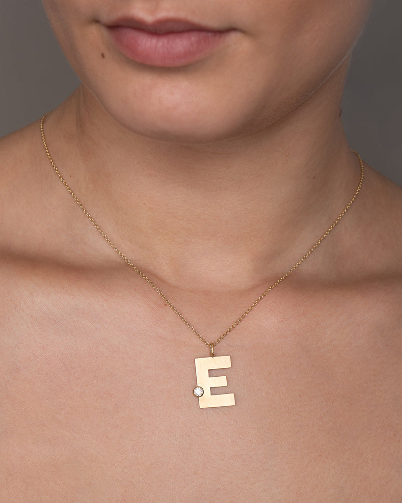 Letter E vedhænget er et smukt guldvedhæng med 1 brillant. 0,13 ct. F/G, vs2, Ex. cut fra Dulong kollektionen Letters.