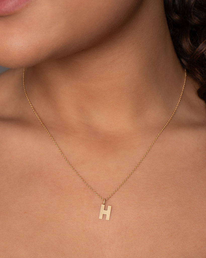 På trods af det skarpe udtryk, falder Letter H vedhænget smukt ind mod huden og gør det behageligt at have på.